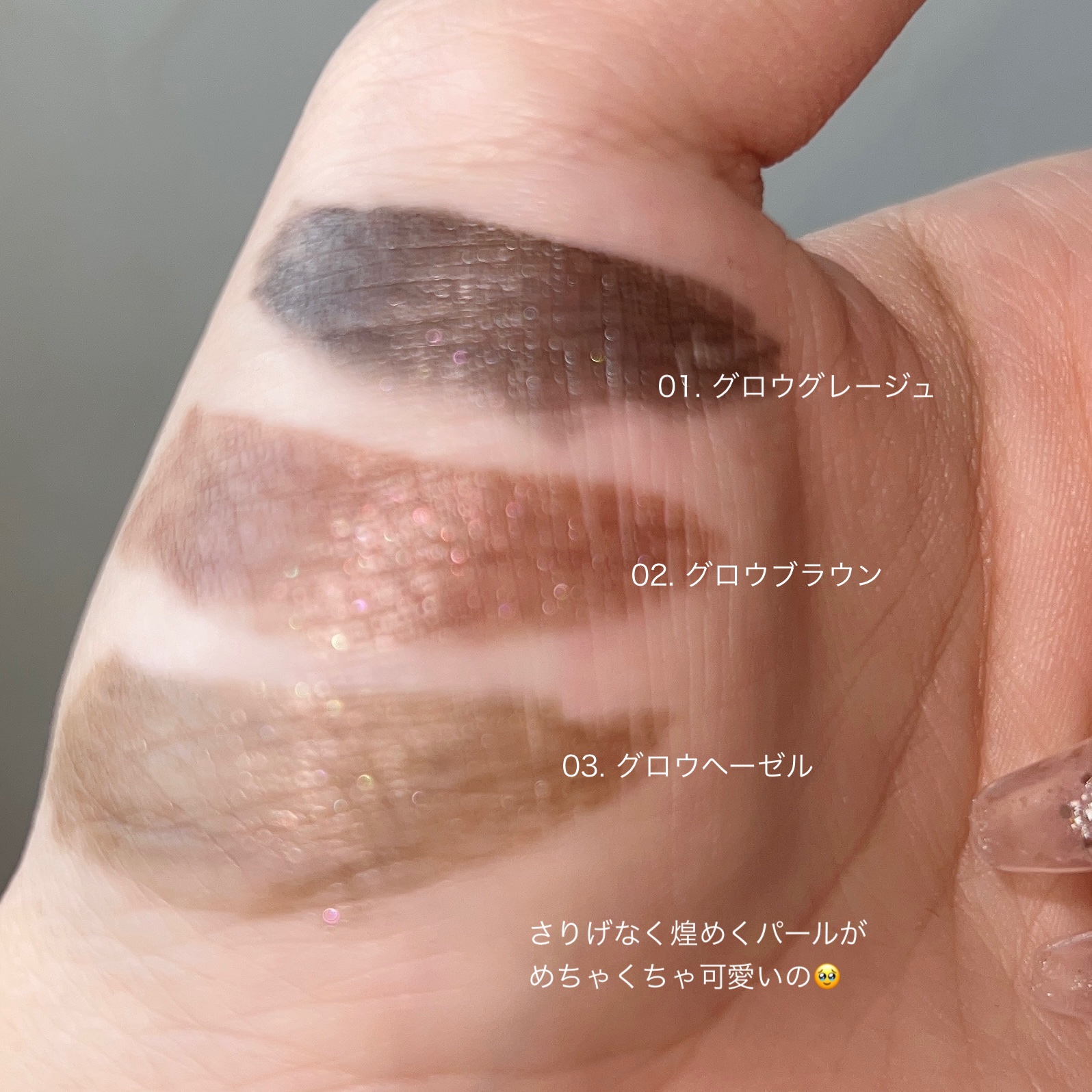- <01 グロウグレージュ> 水、BG、アクリレーツコポリマーアンモニウム、アルミナ、結晶セルロース、キサンタンガム、ヒアルロン酸Na、ベヘネス-30、カプリリルグリコール、セルロースガム、ポリグリセリル-3ジシロキサンジメチコン、酸化スズ、AMP、クエン酸、セスキイソステアリン酸ソルビタン、トリイソステアリン酸ポリグリセリル-2、ミリスチン酸ポリグリセリル-10、ステアリン酸ポリグリセリル-10、トリオレイン酸ソルビタン、トコフェロール、フェノキシエタノール、メチルパラベン、エチルパラベン、酸化チタン、カーボンブラック <02 グロウブラウン> 水、BG、アクリレーツコポリマーアンモニウム、アルミナ、結晶セルロース、キサンタンガム、ヒアルロン酸Na、ベヘネス-30、カプリリルグリコール、セルロースガム、ポリグリセリル-3ジシロキサンジメチコン、酸化スズ、クエン酸、AMP、セスキイソステアリン酸ソルビタン、トリイソステアリン酸ポリグリセリル-2、ミリスチン酸ポリグリセリル-10、ステアリン酸ポリグリセリル-10、トリオレイン酸ソルビタン、トコフェロール、フェノキシエタノール、メチルパラベン、エチルパラベン、酸化鉄、合成金雲母、酸化チタン、カーボンブラック、赤226 <03 グロウヘーゼル> 水、BG、アクリレーツコポリマーアンモニウム、結晶セルロース、キサンタンガム、ヒアルロン酸Na、アルミナ、ベヘネス-30、カプリリルグリコール、セルロースガム、ポリグリセリル-3ジシロキサンジメチコン、酸化スズ、AMP、クエン酸、セスキイソステアリン酸ソルビタン、トリイソステアリン酸ポリグリセリル-2、ミリスチン酸ポリグリセリル-10、ステアリン酸ポリグリセリル-10、トリオレイン酸ソルビタン、トコフェロール、フェノキシエタノール、メチルパラベン、エチルパラベン、酸化鉄、合成金雲母、酸化チタン、カーボンブラック、マイカ <05 ブラウンシェイド> 水、アクリレーツコポリマーアンモニウム、BG、1,2-ヘキサンジオール、アルミナ、結晶セルロース、キサンタンガム、ヒアルロン酸Na、ベヘネス-30、セルロースガム、ポリグリセリル-3ジシロキサンジメチコン、水酸化Al、酸化スズ、クエン酸、AMP、セスキイソステアリン酸ソルビタン、トリイソステアリン酸ポリグリセリル-2、ミリスチン酸ポリグリセリル-10、ステアリン酸ポリグリセリル-10、トリオレイン酸ソルビタン、トコフェロール、フェノキシエタノール、メチルパラベン、エチルパラベン、酸化チタン、酸化鉄、カーボンブラック、マイカ <06 拡張極薄ピンク> 水、アクリレーツコポリマーアンモニウム、BG、1,2-ヘキサンジオール、アルミナ、結晶セルロース、キサンタンガム、ヒアルロン酸Na、ベヘネス-30、セルロースガム、ポリグリセリル-3ジシロキサンジメチコン、酸化スズ、クエン酸、AMP、セスキイソステアリン酸ソルビタン、トリイソステアリン酸ポリグリセリル-2、ミリスチン酸ポリグリセリル-10、ステアリン酸ポリグリセリル-10、トリオレイン酸ソルビタン、トコフェロール、フェノキシエタノール、メチルパラベン、エチルパラベン、酸化鉄、酸化チタン、マイカ <07 トイプーブラウン> 水、アクリレーツコポリマーアンモニウム、BG、1,2-ヘキサンジオール、結晶セルロース、キサンタンガム、ヒアルロン酸Na、ベヘネス-30、アルミナ、水酸化Al、ポリグリセリル-3ジシロキサンジメチコン、セルロースガム、クエン酸、AMP、酸化スズ、セスキイソステアリン酸ソルビタン、トリイソステアリン酸ポリグリセリル-2、ミリスチン酸ポリグリセリル-10、ステアリン酸ポリグリセリル-10、トリオレイン酸ソルビタン、トコフェロール、フェノキシエタノール、メチルパラベン、エチルパラベン、酸化鉄、酸化チタン、カーボンブラック、マイカ <04 ライラックモーブ> 水、アクリレーツコポリマーアンモニウム、BG、1,2-ヘキサンジオール、アルミナ、結晶セルロース、キサンタンガム、ヒアルロン酸Na、ベヘネス-30、シリカ、セルロースガム、ポリグリセリル-3ジシロキサンジメチコン、水酸化Al、酸化スズ、クエン酸、AMP、セスキイソステアリン酸ソルビタン、トリイソステアリン酸ポリグリセリル-2、ミリスチン酸ポリグリセリル-10、ステアリン酸ポリグリセリル-10、トリオレイン酸ソルビタン、トコフェロール、フェノキシエタノール、メチルパラベン、エチルパラベン、酸化チタン、酸化鉄、マイカ、カーボンブラック、赤226、青1