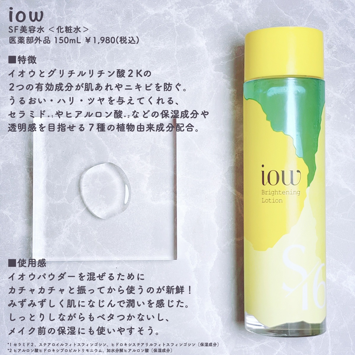 イオウ*1の力でつるすべな肌を目指せるROSETTEの新ブランド『iow(イオウ)』☆ つるつる肌を目指せると聞いて、「なるほど👏」という使い心地でした☆ イオウってあの温泉の香りの硫黄ですよね✶∗*゚ パウダー洗顔だけどもっちりとして泡ができるので摩擦レスにしっかり洗えます。 このアイテムは医薬部外品!有効成分のイオウとグリチルリチン酸2Kで肌あれやニキビを防ぎながら、保湿成分でしっとりとした仕上がりに♪ イオウ*1とクレイ*4酵素*3で毛穴やくすみ*5、角質ケアまで! 香りはほんのりイオウの香り。温泉に入ってる気分になれちゃうかも?🤗 新しいスキンケアブランド「iow」で、光透肌*6目指してみませんか♪