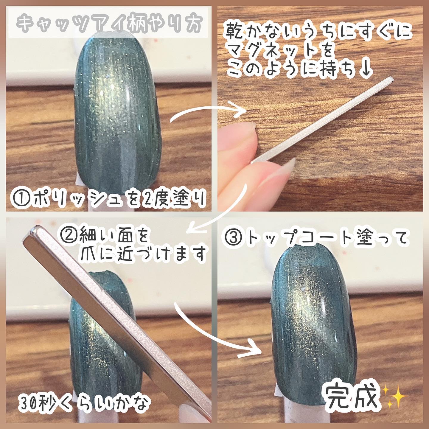 マグネットも同時発売別売りで、 マグネットは1つ100円(税別) マグアートジェルは1本300円(税別)だよ!! マグネットをあてるときらめきが増してすっごくかわいい🥰 そのままでも超超かわいいし、 セリアジェルの『ユニコーンホワイト』とあわせづかいでまた雰囲気が変わるから是非やってみてね!!