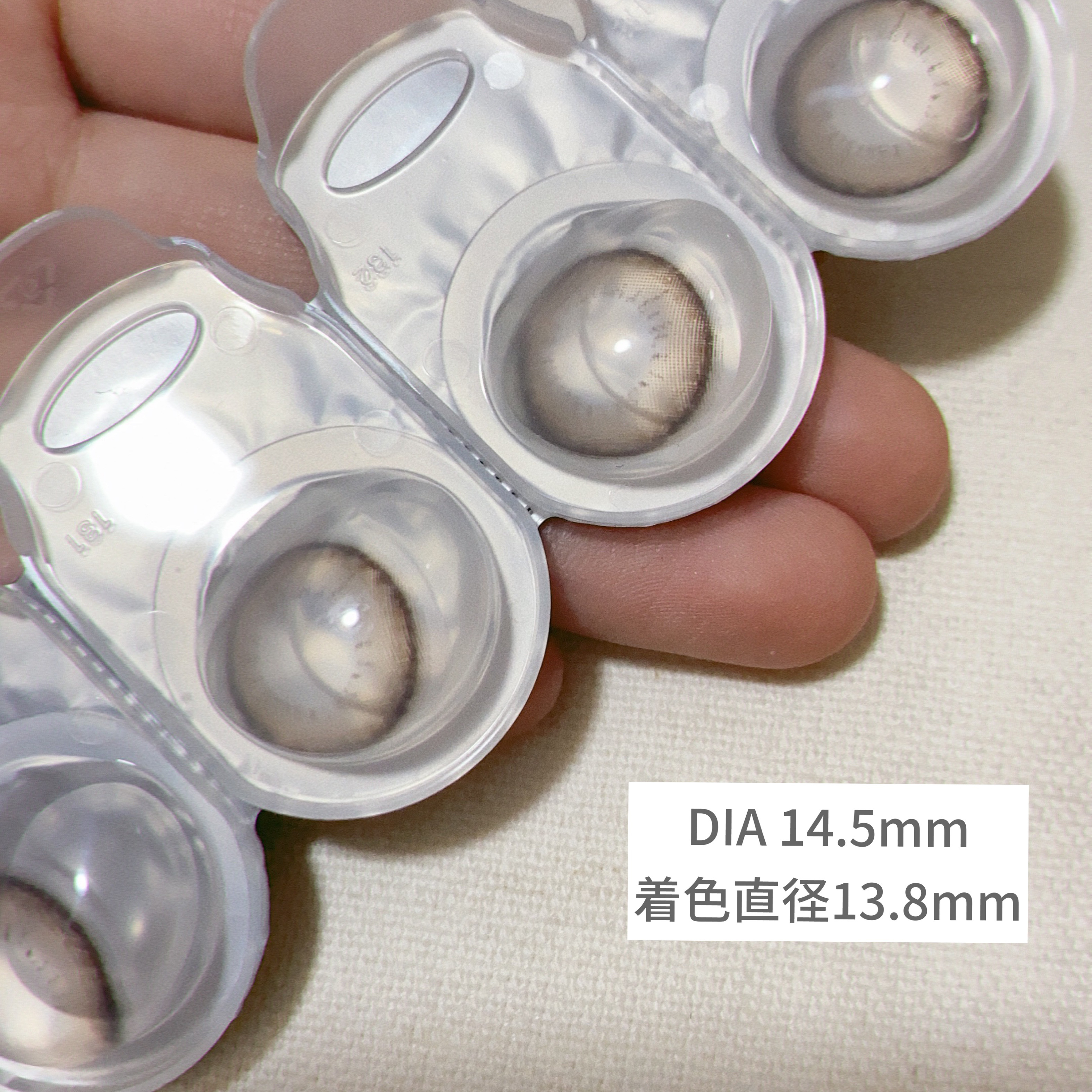 - ※2023年6月〜製品ラベルのデザインを一部変更いたします(順次切替予定)。尚これに係る商品の返品・交換等は承っておりません。 ”もっとバレずに盛れる” レンズデザインに極小ドットを採用することで、本来の瞳の色に溶け込むように馴染み、よりバレにくいナチュラルな仕上がりに。 ■パールスノーグレー(Pearl Snow Gray) ちゅるんとした絶妙グレーで透明感と抜け感のある瞳になれるデザイン。 ■テディモカ(Teddy Mocha) 甘モテ♡色っぽちゅるんオトナのミュートブラウン くりっと甘い盛り感で色気ただよう、ちゅるんな瞳 ■ミルクブラウニー(Milk Brownie) “ナチュ盛り♡ふわちゅるん”ピュアなブラウンベージュ 柔らかなミルクブラウンで甘さたっぷり、ピュアな瞳 DIA:14.5mm BC:8.7mm 中心厚:0.08mm( -3.00D ) 含水率: 38.6%(※ナチュラルブラウン、シャンパンブラウン、ナチュラルブラック) 42.5%(※アプリコットブラウン・ナチュラルモカ・クラシックチーク・クリアキャメル・パールベージュ・スムースコーラル・くぎづけの心・ひとめぼれの恋・パールスノーグレー・テディモカ ・ミルクブラウニー) カラーコンタクトレンズの不適正使用による眼障害の危険性等などがあります。 ●コンタクトレンズは高度管理医療機器です。不十分な洗浄・消毒など不適切なケアや、長時間・交換期間を超えた装用により、アレルギー性結膜炎、角膜感染症、角膜潰瘍等の重篤な眼障害が発生する危険性があります ●ご使用前に取扱説明書を確認してください 使用上の留意事項 ●眼科医院等を受診してからお求めください ●眼に異常を感じたら直ちにレンズ使用を中止し、お近くの眼科等で診察を受けてください ●医師の指示にしたがってご使用ください ●コンタクトレンズを装用する場合、自覚症状がなくても、眼科医院等での定期検査を受けてください ●レンズに不具合がある場合は使用しないでください