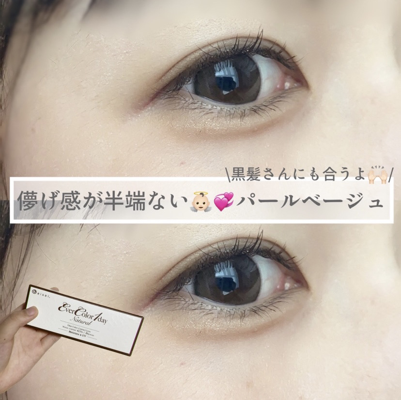 EverColor1dayNaturalパールベージュ🧸DIA14.5mm/BC8.7mm/着色直径13.8mm含水率42.5%/UVcut+Moist色素薄い系ベージュと極細フチで儚げピュアな瞳#エバーカラー#エバーカラーワンデー#パールベ...