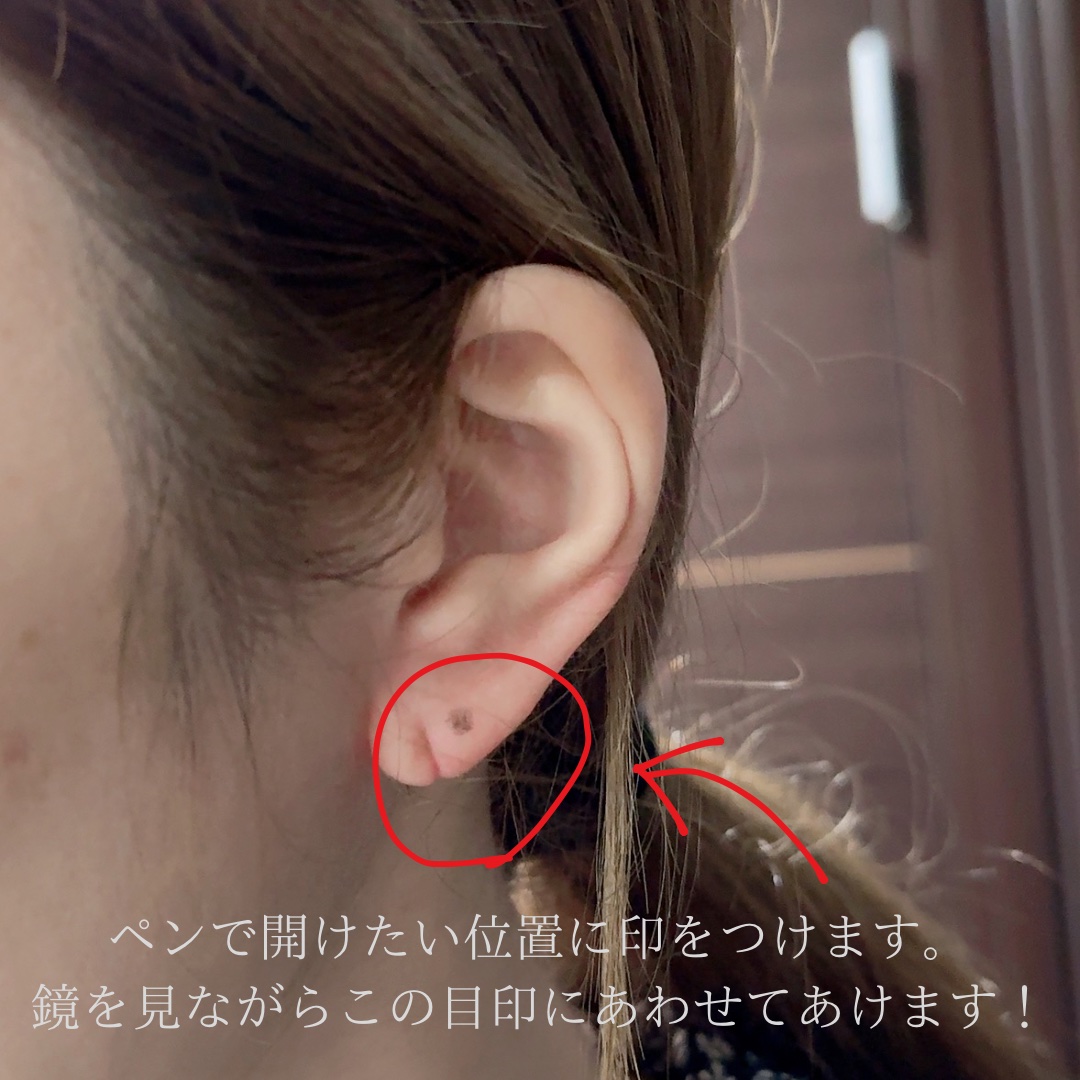 純チタン製を選びました! 日本製です🇯🇵 注射も大嫌いな痛がりな私ですが、思っている半分も痛くないです🌱 開ける前にアイライナーで印をつけておくこと、手をしっかり洗い、消毒するなど清潔な状態ではじめることも忘れずに♡