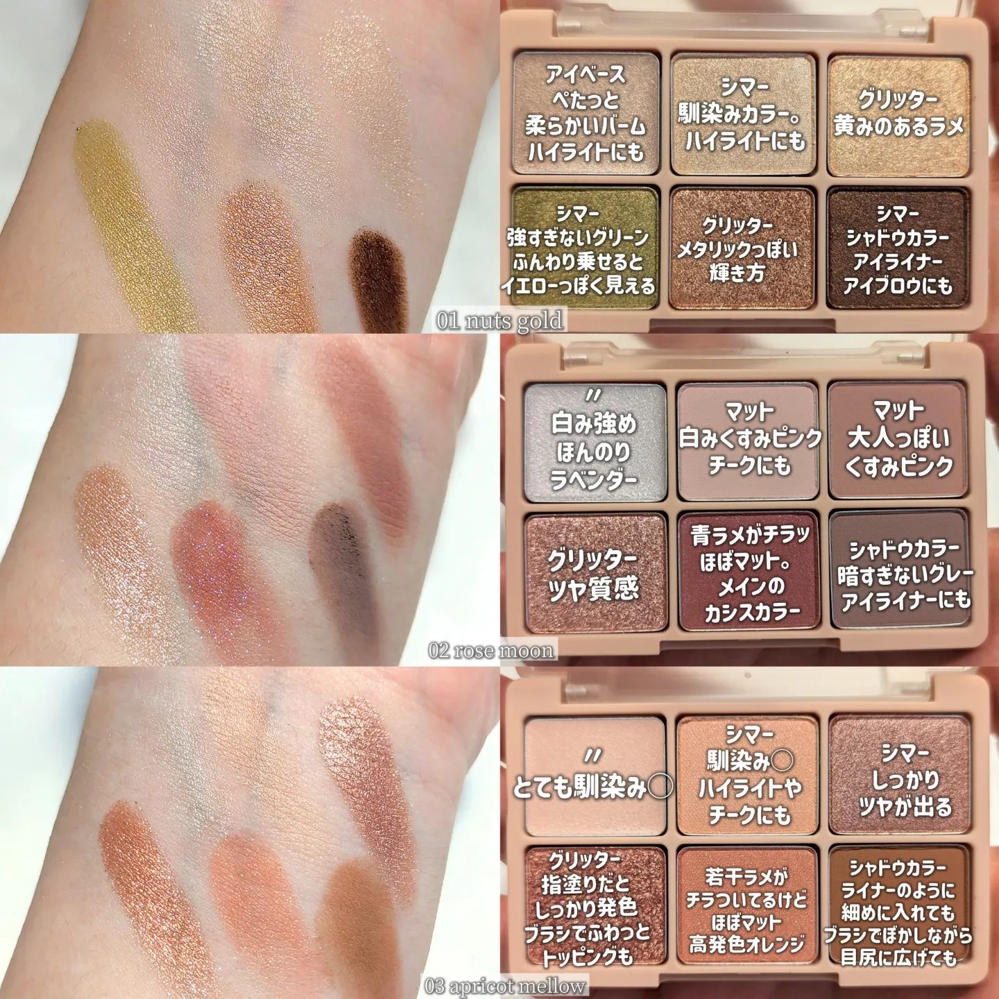 - シルキーななめらかさつづく#シルクシャドウ。 ハイライトやアイブロウ、チークにも使える質感MIX6色マルチパレット。ワンパレットで目元メイクが完成し、統一感のあるおしゃれ顔が簡単に。 どの色を重ねてもにごらず透け色がきらめき、微細なラメもぴたっと密着、失敗しらず。(5つの保湿美容成分配合*で目元しっとり。) *ヒアルロン酸Na、セラミドNP、カニナバラ果実油、シア油、ヤシ油