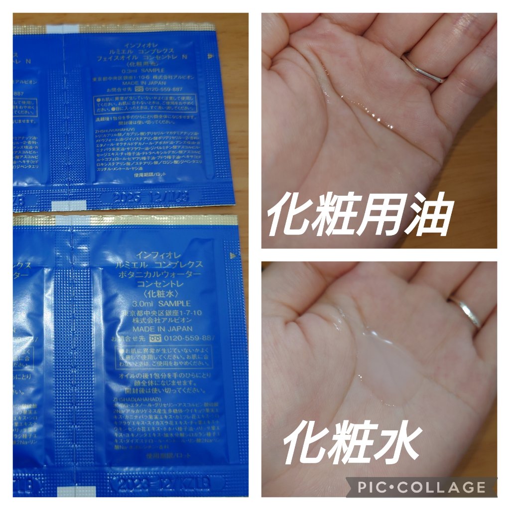 インフィオレルミエル コンプレクス・フェイスオイルコンセントレ・ボタニカルウォーターコンセントレ2ステップでケアが完結するのに、物足りなさは感じない!オイルがごくごく化粧水を飲んでいるような感覚でした!また、タッチアップをしていただいた時に、...