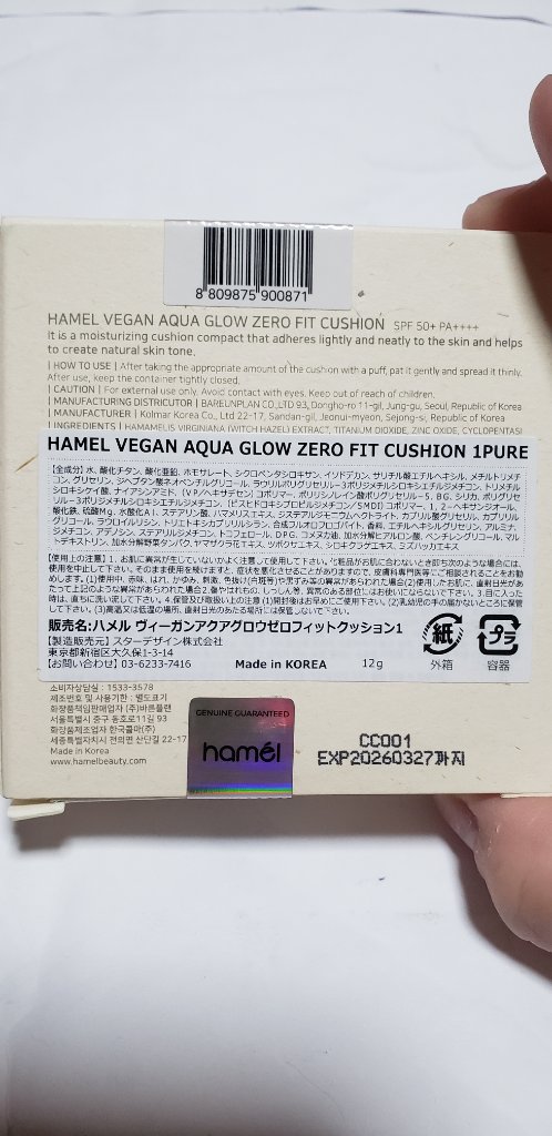 商品詳細情報HAMEL ヴィーガンアクアゼロフィットクッション