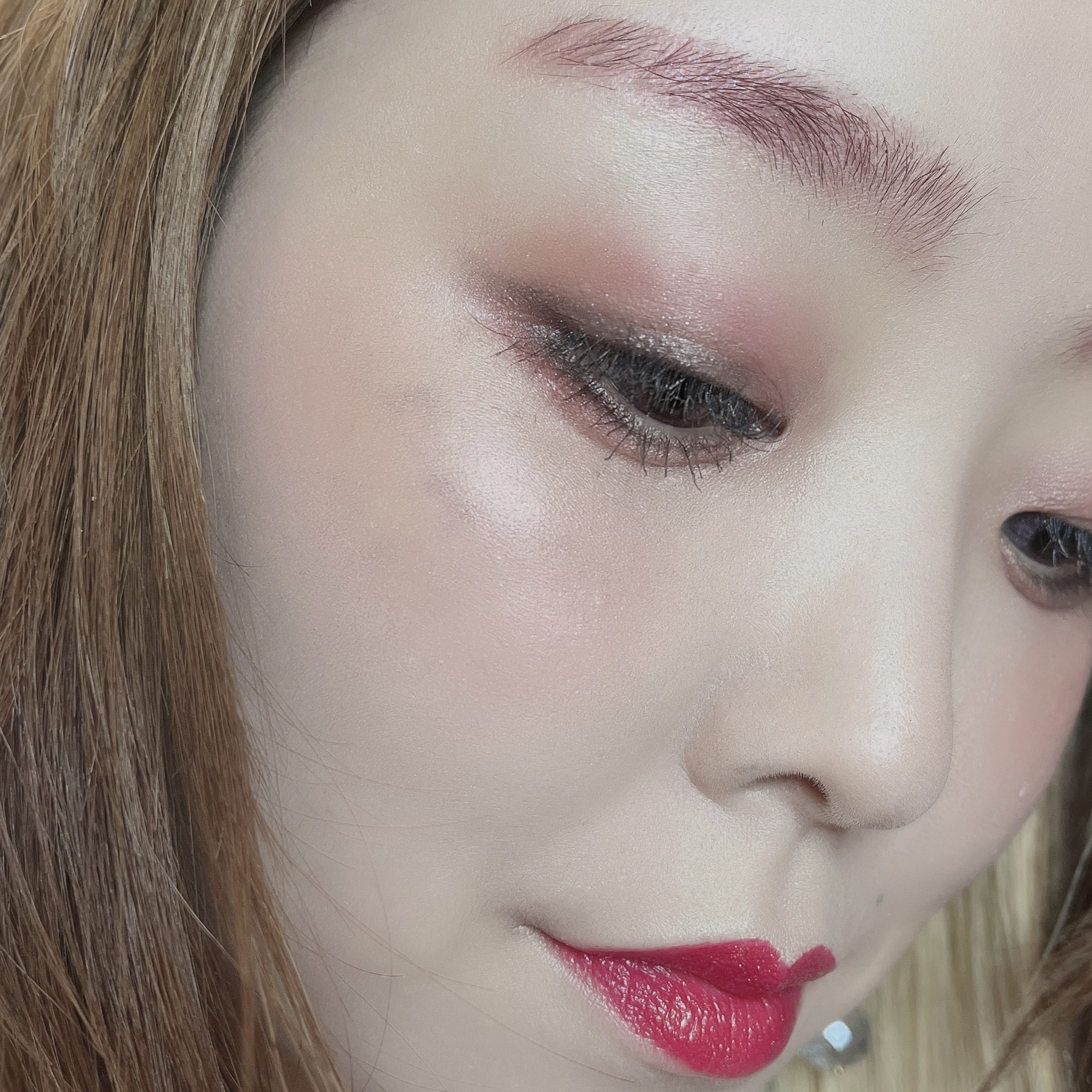 チークポップ持ってる人なら分かると思いますが、パール感は強め。 指で濃いめにつけてるので実際ブラシにとってつけるともっと薄めでモーヴカラー。 白っぽいパールなので見た目より明るめの発色。