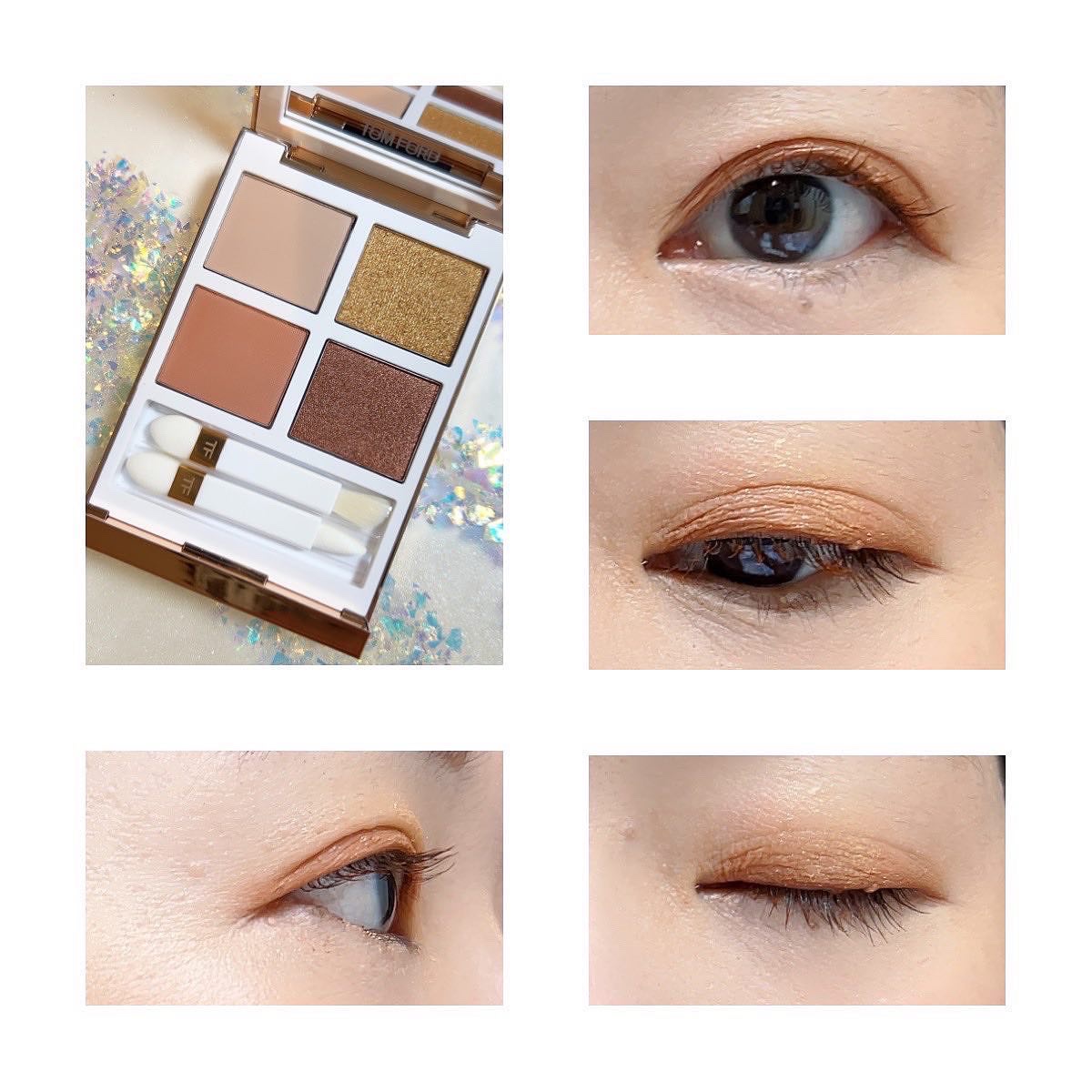 #TOMFORD#アイカラークォード#ソレイユドゥフアイカラークォード#アイランドヘイズゴールドのパケが煌びやか♡・マットオレンジは老けて見える気がする・アイラインに使えるカラーがないなので、このパレットだけで仕上げるのは難しいです。上からシ...