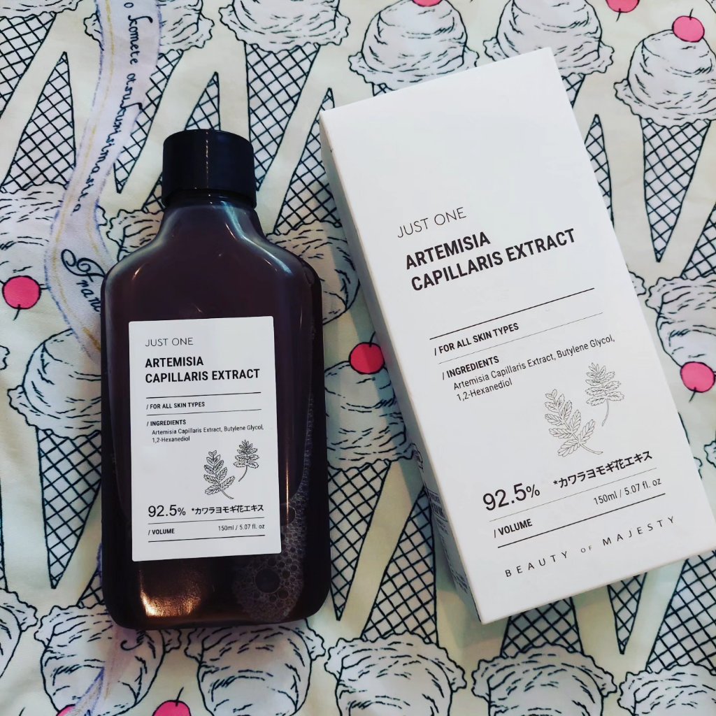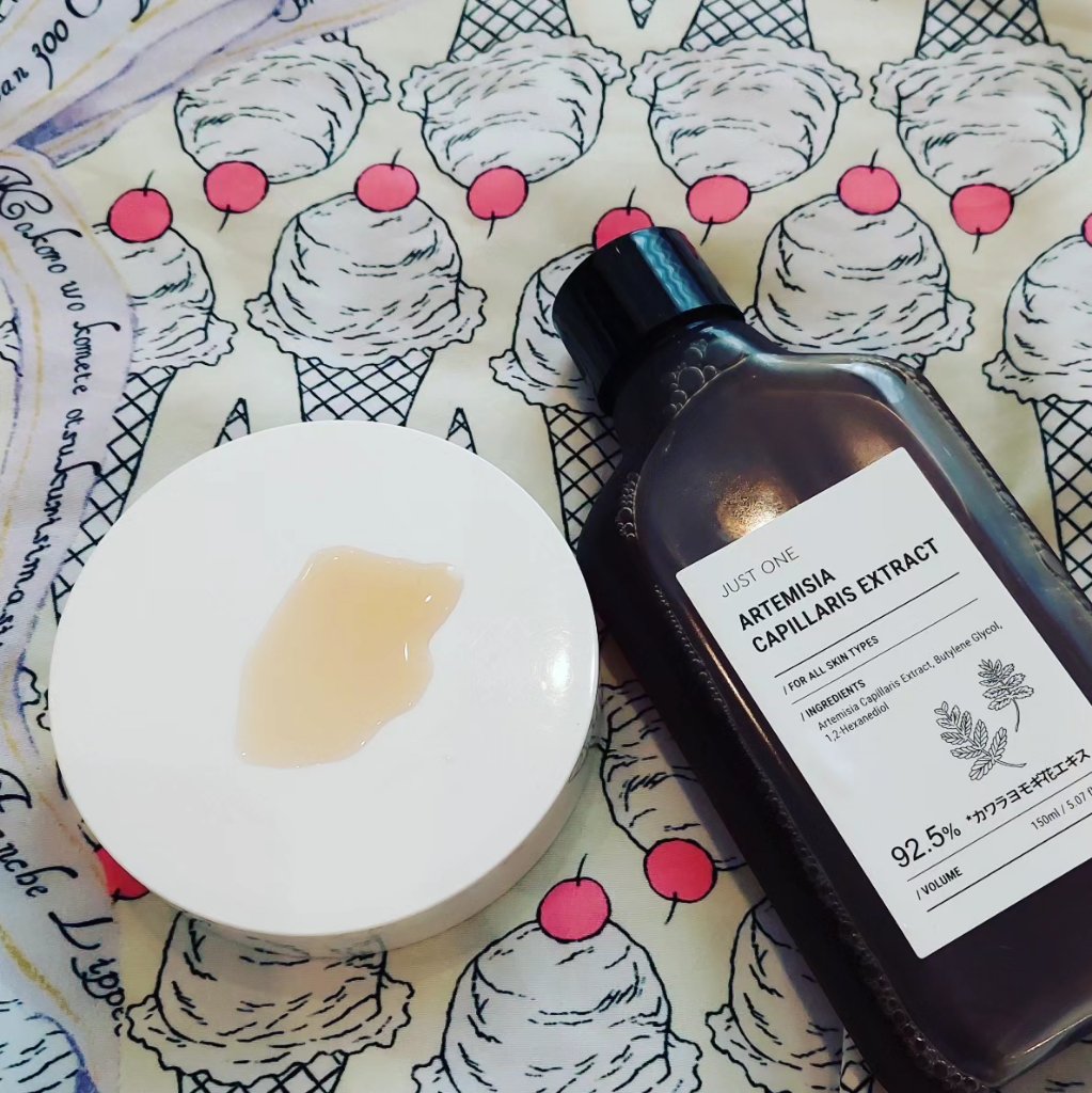 パシャパシャと使えるサラっとしたテクスチャ。 そのまま化粧水としても、ボトルに入れてスプレーにしたり、他のスキンケアと混ぜて使うことも可能◎ カワラヨモギの自然由来の薬草のような香りが気に入っていますが、ここは好みが分かれるところかもしれません🌿 パッケージがおしゃれで素敵です💓