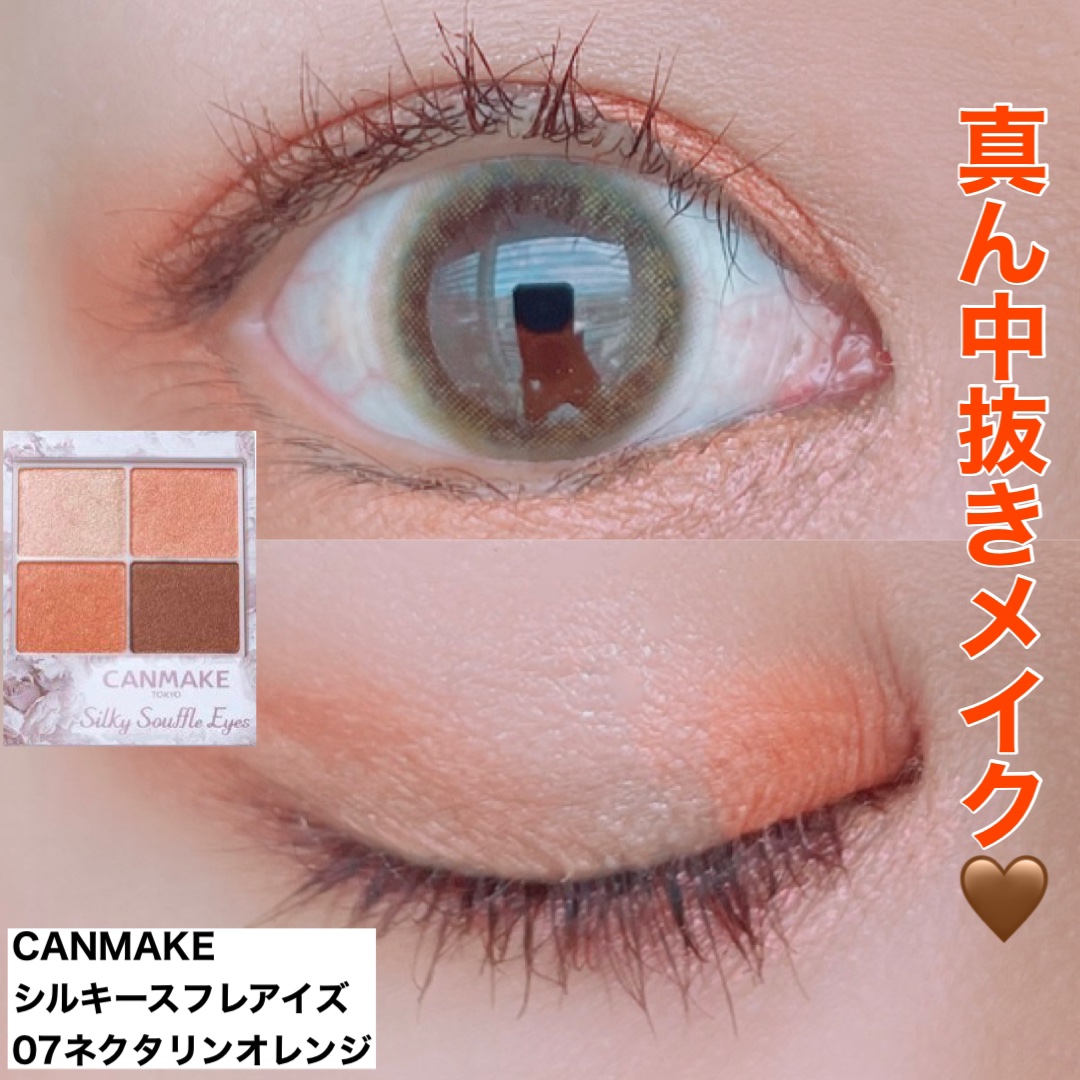 今回はキャンメイク シルキースフレアイズ07 ネクタリンオレンジをご紹介します!オレンジメイクをしたい時にピッタリです。上の二つの色はラメが結構入っているのでつけすぎ注意です。締め色の茶色は濃すぎることなくつかいやすいです。明るく元気な印象に...