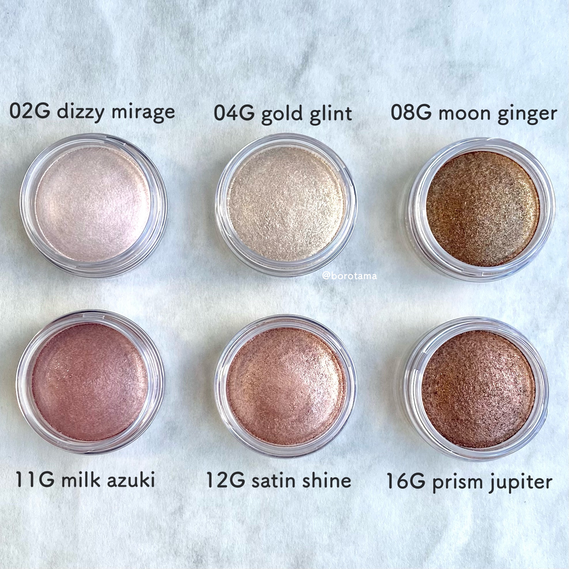 - <01G twinkle sand> シクロメチコン、合成フルオロフロゴパイト、ジフェニルジメチコン、(ジメチコン/ビニルジメチコン)クロスポリマー、イソドデカン、トリメチルシロキシケイ酸、ジメチコン、アストロカリウムムルムル種子脂、ゼニアオイエキス、ダマスクバラ花エキス、トコフェロール、マツリカ花エキス、レモン果実エキス、BG、BHT、TEA、(HDI/トリメチロールヘキシルラクトン)クロスポリマー、イソステアリン酸デキストリン、エタノール、エチルヘキサン酸セチル、キサンタンガム、シリカ、ジメチルシリル化シリカ、スクワラン、ステアリン酸イヌリン、セルロース、テトラ(ジ-t-ブチルヒドロキシヒドロケイヒ酸)ペンタエリスリチル、トリ(カプリル酸/カプリン酸)グリセリル、トリイソステアリン酸イソプロピルチタン、トリエチルヘキサノイン、ハイドロゲンジメチコン、ポリプロピレン、ミネラルオイル、合成ワックス、酸化スズ、水、水酸化Al、水添ポリ(C6-20オレフィン)、水添レシチン、麻セルロース、フェノキシエタノール、香料、オキシ塩化ビスマス、グンジョウ、マイカ、酸化チタン、酸化鉄 <02G dizzy mirage> 合成フルオロフロゴパイト、シクロメチコン、ジフェニルジメチコン、(ジメチコン/ビニルジメチコン)クロスポリマー、イソドデカン、トリメチルシロキシケイ酸、ジメチコン、アストロカリウムムルムル種子脂、ゼニアオイエキス、ダマスクバラ花エキス、トコフェロール、マツリカ花エキス、レモン果実エキス、BG、BHT、TEA、(HDI/トリメチロールヘキシルラクトン)クロスポリマー、イソステアリン酸デキストリン、エタノール、エチルヘキサン酸セチル、キサンタンガム、シリカ、ジメチルシリル化シリカ、スクワラン、ステアリン酸イヌリン、セルロース、テトラ(ジ-t-ブチルヒドロキシヒドロケイヒ酸)ペンタエリスリチル、トリ(カプリル酸/カプリン酸)グリセリル、トリイソステアリン酸イソプロピルチタン、トリエチルヘキサノイン、ハイドロゲンジメチコン、ポリプロピレン、ミネラルオイル、合成ワックス、酸化スズ、水、水酸化Al、水添ポリ(C6-20オレフィン)、水添レシチン、麻セルロース、フェノキシエタノール、香料、オキシ塩化ビスマス、グンジョウ、マイカ、酸化チタン、酸化鉄 <03G romantic crush> 合成フルオロフロゴパイト、シクロメチコン、ジフェニルジメチコン、(ジメチコン/ビニルジメチコン)クロスポリマー、イソドデカン、トリメチルシロキシケイ酸、ジメチコン、ホウケイ酸(Ca/Al)、アストロカリウムムルムル種子脂、ゼニアオイエキス、ダマスクバラ花エキス、トコフェロール、マツリカ花エキス、レモン果実エキス、BG、BHT、TEA、(HDI/トリメチロールヘキシルラクトン)クロスポリマー、イソステアリン酸デキストリン、エタノール、エチルヘキサン酸セチル、キサンタンガム、シリカ、ジメチルシリル化シリカ、スクワラン、ステアリン酸イヌリン、セルロース、テトラ(ジ-t-ブチルヒドロキシヒドロケイヒ酸)ペンタエリスリチル、トリ(カプリル酸/カプリン酸)グリセリル、トリイソステアリン酸イソプロピルチタン、トリエチルヘキサノイン、トリエトキシカプリリルシラン、ハイドロゲンジメチコン、ポリプロピレン、ミネラルオイル、合成ワックス、酸化スズ、水、水酸化Al、水添ポリ(C6-20オレフィン)、水添レシチン、麻セルロース、フェノキシエタノール、香料、オキシ塩化ビスマス、グンジョウ、マイカ、酸化チタン、酸化鉄 <04G gold glint> 合成フルオロフロゴパイト、シクロメチコン、ジフェニルジメチコン、(ジメチコン/ビニルジメチコン)クロスポリマー、イソドデカン、トリメチルシロキシケイ酸、ジメチコン、ホウケイ酸(Ca/Al)、アストロカリウムムルムル種子脂、ゼニアオイエキス、ダマスクバラ花エキス、トコフェロール、マツリカ花エキス、レモン果実エキス、BG、BHT、TEA、(HDI/トリメチロールヘキシルラクトン)クロスポリマー、イソステアリン酸デキストリン、エタノール、エチルヘキサン酸セチル、キサンタンガム、シリカ、ジメチルシリル化シリカ、スクワラン、ステアリン酸イヌリン、セルロース、テトラ(ジ-t-ブチルヒドロキシヒドロケイヒ酸)ペンタエリスリチル、トリ(カプリル酸/カプリン酸)グリセリル、トリイソステアリン酸イソプロピルチタン、トリエチルヘキサノイン、ハイドロゲンジメチコン、ポリプロピレン、ミネラルオイル、ラウリン酸亜鉛、合成ワックス、酸化スズ、水、水酸化Al、水添ポリ(C6-20オレフィン)、水添レシチン、麻セルロース、フェノキシエタノール、香料、オキシ塩化ビスマス、グンジョウ、マイカ、酸化チタン、酸化鉄 <05G peach bloom> シクロメチコン、合成フルオロフロゴパイト、ジフェニルジメチコン、(ジメチコン/ビニルジメチコン)クロスポリマー、イソドデカン、トリメチルシロキシケイ酸、ジメチコン、アストロカリウムムルムル種子脂、ゼニアオイエキス、ダマスクバラ花エキス、トコフェロール、マ