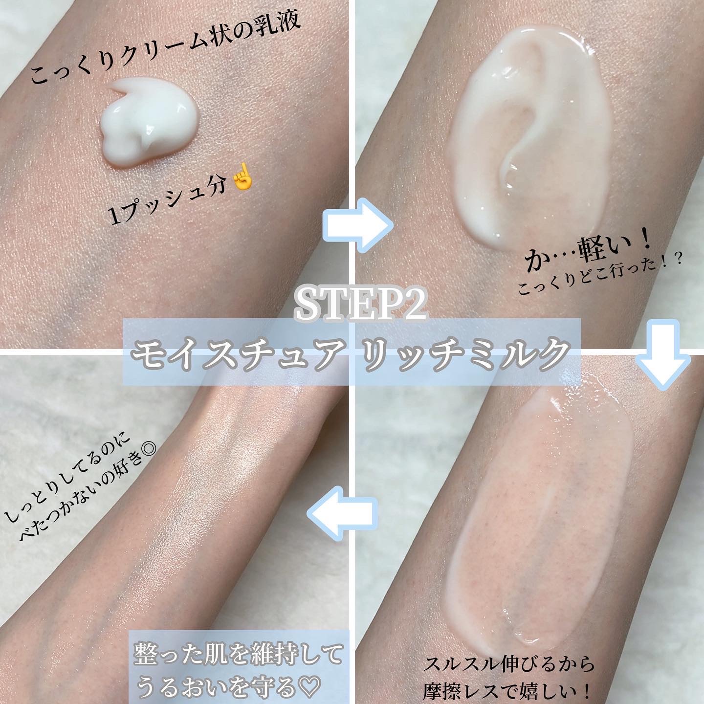 乳液よりクリームに近い ややこっくりめのテクスチャー 普通の乳液より保湿力高めで脂性肌さんとかはこの後にクリーム塗らなくてもこれ1本でいけちゃいそう◎ もうすぐ花粉の時期もくるしどんどん使っていくー😍 エアレス容器ににっています!