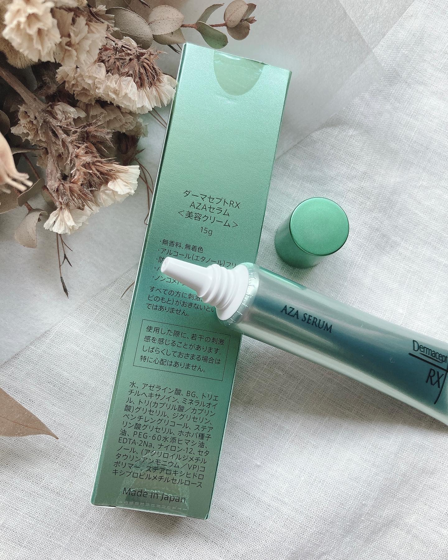 AZAセラムはアゼライン酸(整肌保湿成分)配合した高機能セラム 毛穴や皮脂が気になる 繰り返す肌トラブルが悩み つるんとした肌になりたい 日本製、そしてダーマセプトRXの専用相談ダイヤルがあるので安心して使えるのも嬉しいところ