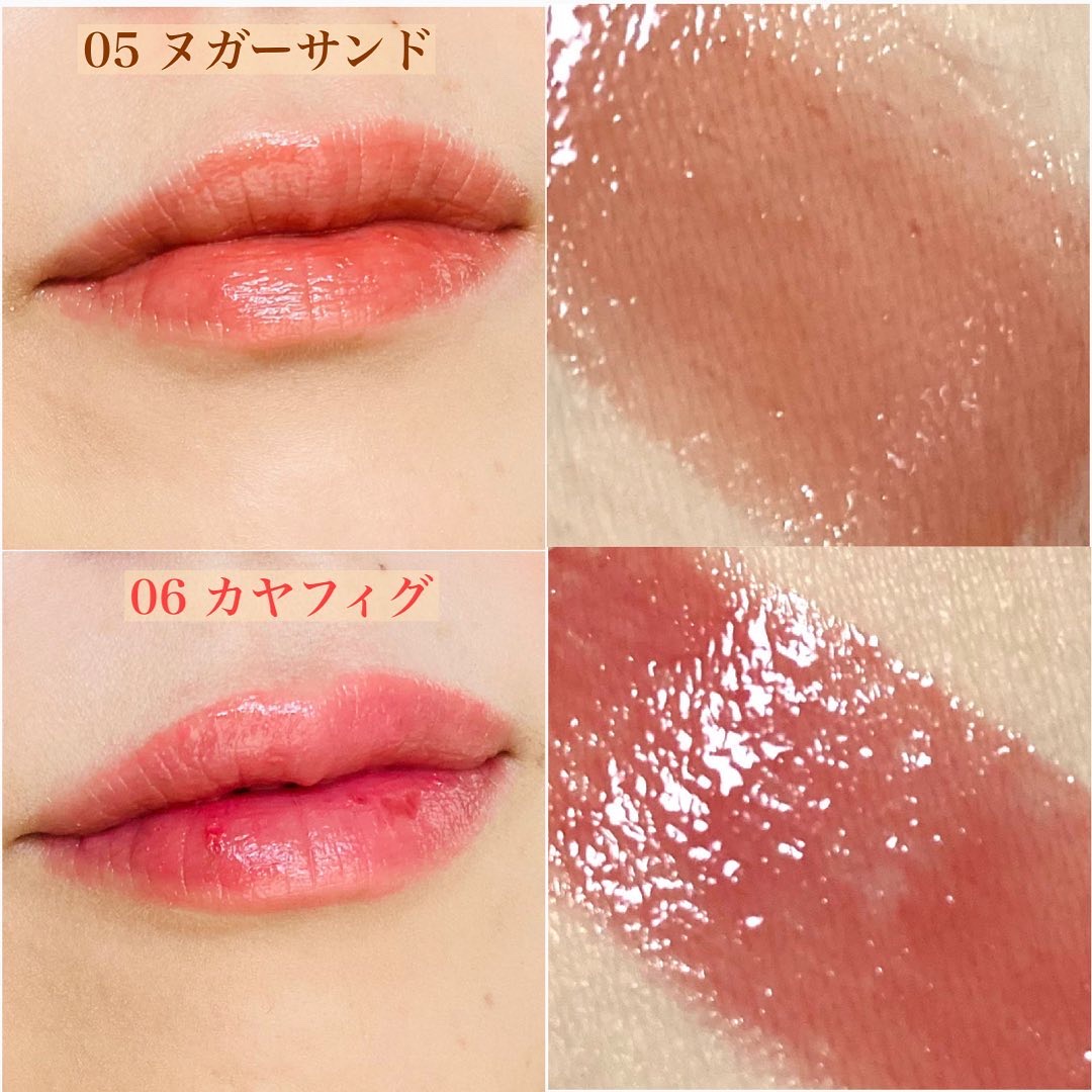 - <01 ココヌード(Coco Nude)> リンゴ酸ジイソステアリル、ダイマージリノール酸ダイマージリノレイルビス(ベヘニル/イソステアリル/フィトステリル)、トリイソステアリン酸ポリグリセリル-2、ビスジグリセリルポリアシルアジペート-2、パラフィン、トリメリト酸トリトリデシル、テトライソステアリン酸ペンタエリスリチル、マイクロクリスタリンワックス、イソステアリン酸ソルビタン、1,2-ヘキサンジオール、ジステアルジモニウムヘクトライト、合成ワックス、酸化チタン、(エチレン/プロピレン)コポリマー、酸化鉄、炭酸プロピレン、香料、赤104(1)、リモネン、リナロール、ホホバ種子油、アーモンド油、アンズ核油、月見草油、オリーブ果実油、アルガニアスピノサ核油、シア脂、ツバキ種子油、トリ(カプリル/カプリン酸)グリセリル、マンゴー果実エキス、カニナバラ果実エキス <02 ラヴィーピンク(Lovey Pink)> リンゴ酸ジイソステアリル、ダイマージリノール酸ダイマージリノレイルビス(ベヘニル/イソステアリル/フィトステリル)、トリイソステアリン酸ポリグリセリル-2、ビスジグリセリルポリアシルアジペート-2、パラフィン、トリメリト酸トリトリデシル、テトライソステアリン酸ペンタエリスリチル、マイクロクリスタリンワックス、イソステアリン酸ソルビタン、1,2-ヘキサンジオール、ジステアルジモニウムヘクトライト、合成ワックス、酸化チタン、(エチレン/プロピレン)コポリマー、赤104(1)、黄5、炭酸プロピレン、赤202、香料、リモネン、リナロール、ホホバ種子油、アーモンド油、アンズ核油、月見草油、オリーブ果実油、アルガニアスピノサ核油、シア脂、ツバキ種子油、トリ(カプリル/カプリン酸)グリセリル、マンゴー果実エキス、カニナバラ果実エキス <03 ソルベバーム(Sorbet Balm)> リンゴ酸ジイソステアリル、ダイマージリノール酸ダイマージリノレイルビス(ベヘニル/イソステアリル/フィトステリル)、トリイソステアリン酸ポリグリセリル-2、ビスジグリセリルポリアシルアジペート-2、パラフィン、トリメリト酸トリトリデシル、テトライソステアリン酸ペンタエリスリチル、マイクロクリスタリンワックス、イソステアリン酸ソルビタン、1,2-ヘキサンジオール、ジステアルジモニウムヘクトライト、合成ワックス、酸化チタン、赤104(1)、(エチレン/プロピレン)コポリマー、酸化鉄、黄5、炭酸プロピレン、香料、リモネン、リナロール、アルガニアスピノサ核油、シア脂、ツバキ種子油、トリ(カプリル/カプリン酸)グリセリル、アーモンド油、アンズ核油、月見草油、オリーブ果実油、ホホバ種子油、マンゴー果実エキス、カニナバラ果実エキス <04 ヒッピーベリー(Hippie Berry)> リンゴ酸ジイソステアリル、ダイマージリノール酸ダイマージリノレイルビス(ベヘニル/イソステアリル/フィトステリル)、トリイソステアリン酸ポリグリセリル-2、ビスジグリセリルポリアシルアジペート-2、パラフィン、トリメリト酸トリトリデシル、テトライソステアリン酸ペンタエリスリチル、マイクロクリスタリンワックス、イソステアリン酸ソルビタン、1,2-ヘキサンジオール、ジステアルジモニウムヘクトライト、合成ワックス、赤104(1)、黄5、(エチレン/プロピレン)コポリマー、赤202、炭酸プロピレン、酸化鉄、酸化チタン、香料、リモネン、リナロール、ホホバ種子油、アーモンド油、アンズ核油、月見草油、オリーブ果実油、アルガニアスピノサ核油、シア脂、ツバキ種子油、トリ(カプリル/カプリン酸)グリセリル、カニナバラ果実エキス、マンゴー果実エキス <05 ヌガーサンド(Nougat Sand)> リンゴ酸ジイソステアリル、ダイマージリノール酸ダイマージリノレイルビス(ベヘニル/イソステアリル/フィトステリル)、トリイソステアリン酸ポリグリセリル-2、ビスジグリセリルポリアシルアジペート-2、パラフィン、トリメリト酸トリトリデシル、テトライソステアリン酸ペンタエリスリチル、マイクロクリスタリンワックス、イソステアリン酸ソルビタン、酸化チタン、1,2-ヘキサンジオール、ジステアルジモニウムヘクトライト、合成ワックス、黄4、(エチレン/プロピレン)コポリマー、酸化鉄、炭酸プロピレン、赤202、香料、リモネン、青1、リナロール、シア脂、ツバキ種子油、トリ(カプリル/カプリン酸)グリセリル、アルガニアスピノサ核油、ホホバ種子油、アーモンド油、アンズ核油、月見草油、オリーブ果実油、マンゴー果実エキス、カニナバラ果実エキス <06 カヤフィグ(Kaya Fig)> リンゴ酸ジイソステアリル、ダイマージリノール酸ダイマージリノレイルビス(ベヘニル/イソステアリル/フィトステリル)、トリイソステアリン酸ポリグリセリル-2、ビスジグリセリルポリアシルアジペート-2、パラフィン、トリメリト酸トリトリデシル、テトライソステアリン酸ペンタエリスリチル、マイクロクリスタリンワックス、イソステアリン酸ソルビタン、1,2-ヘキサンジオール、酸化チタン、ジステアルジモニウムヘク