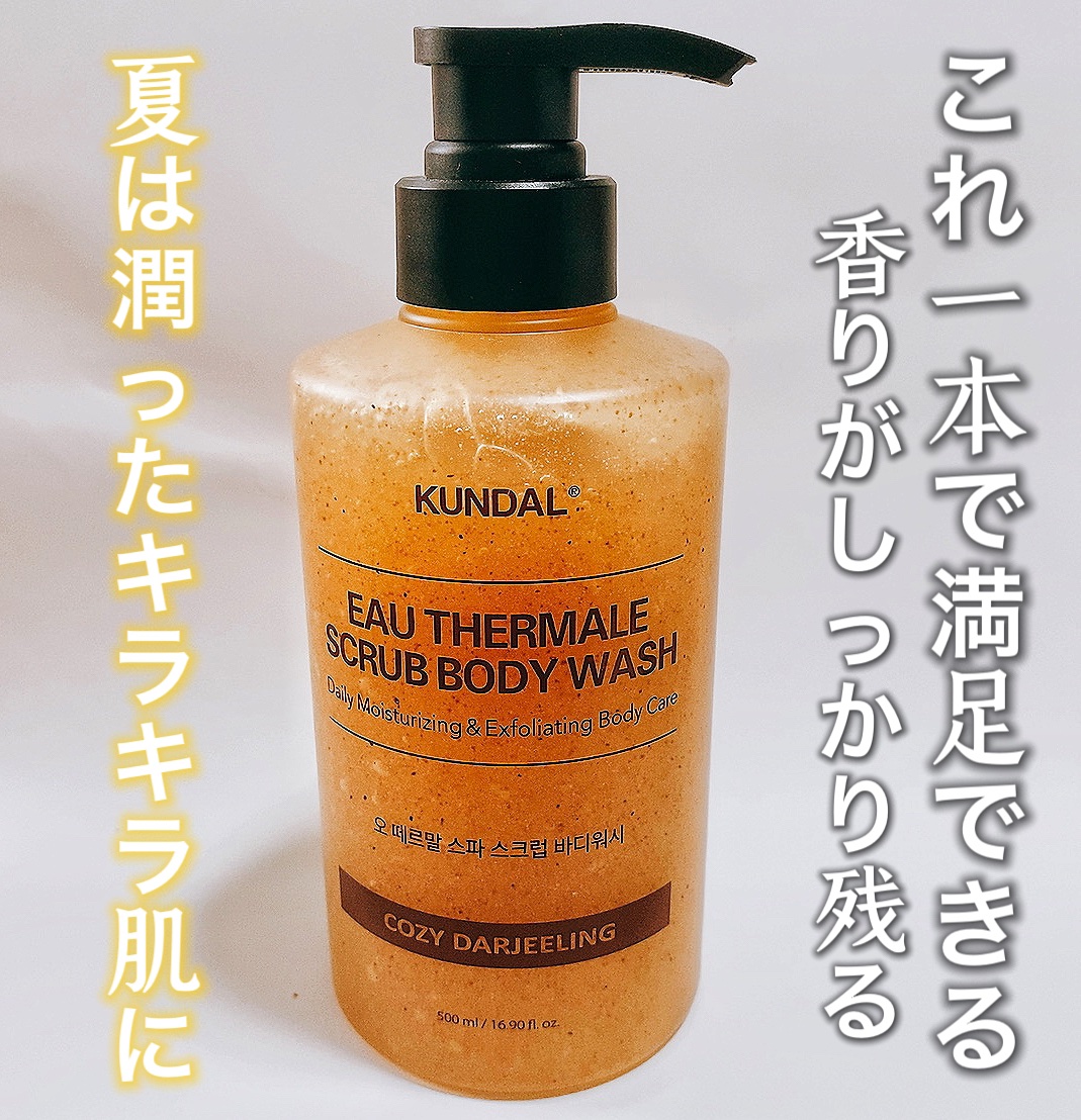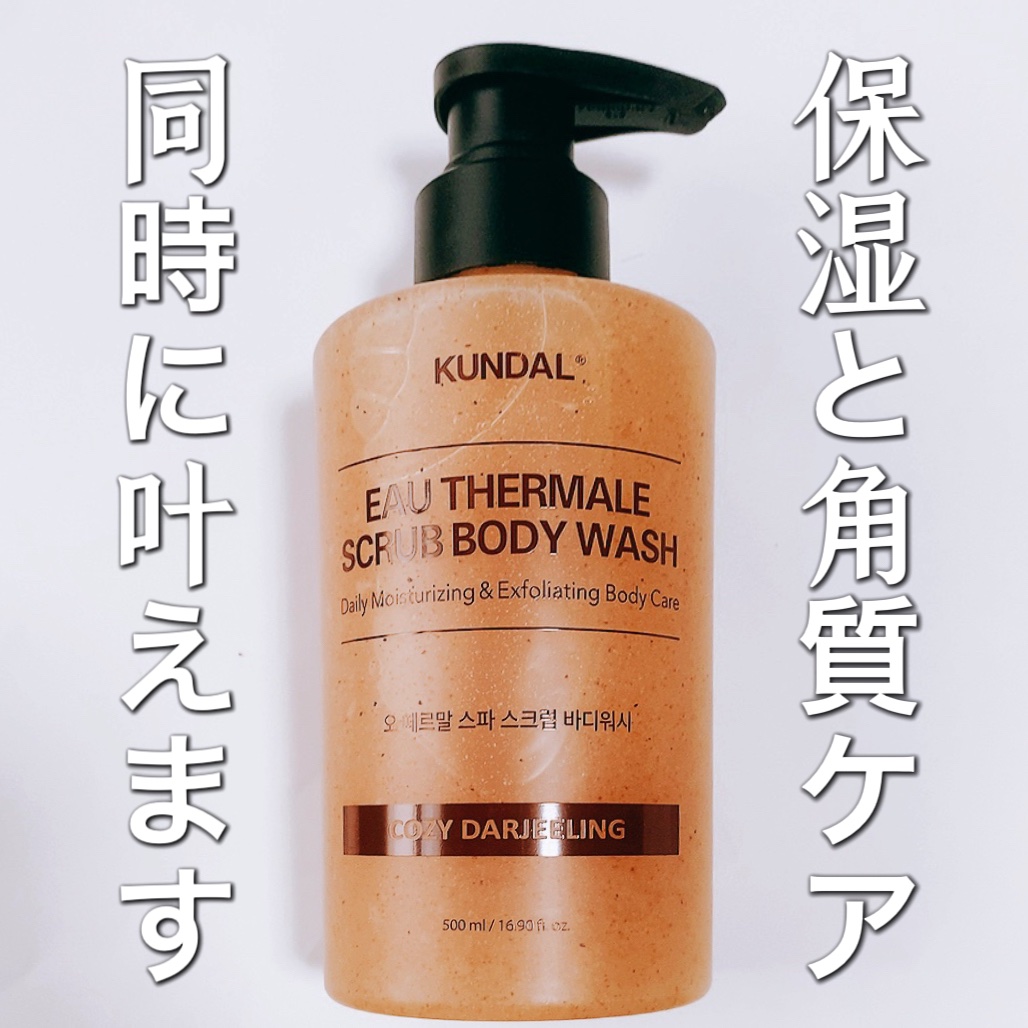KUNDALボディウォッシュ+ボディスクラブボディウォッシュはアップグレードされた保湿成分で洗い上がりしっとり🫧ボディタオルで泡立てるとふんわりした泡ができあがり心地よく全身洗うことができました🧴500mlと大容量なのでコスパも◎香りは独特な...