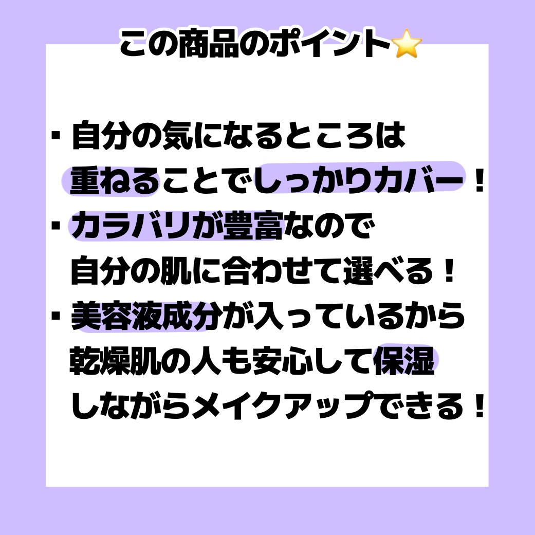 | ファンデーションランキング第41位 | ファンデーションをしながらスキンケアできるって言う神ファンデーション♡ | 詳細を見る | |