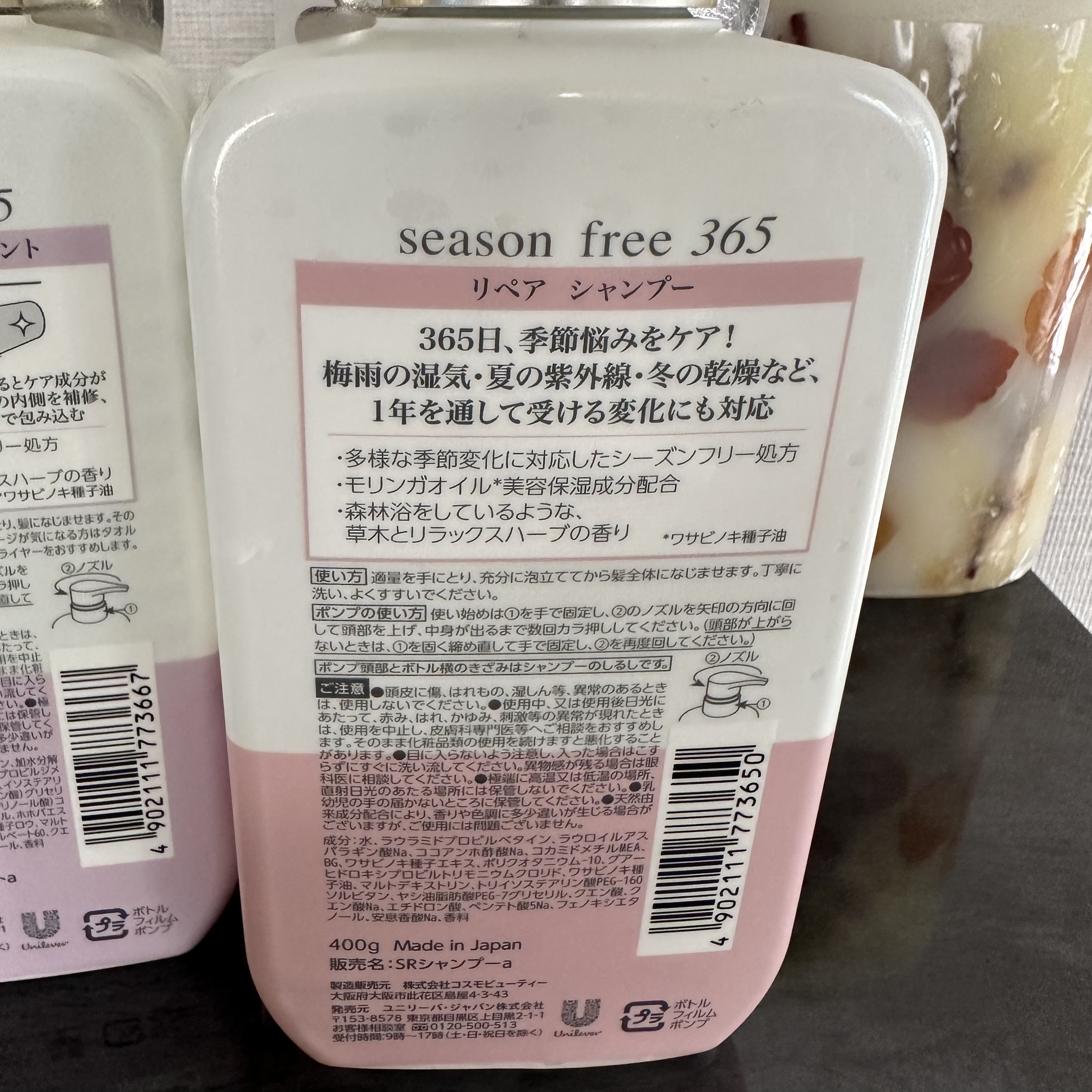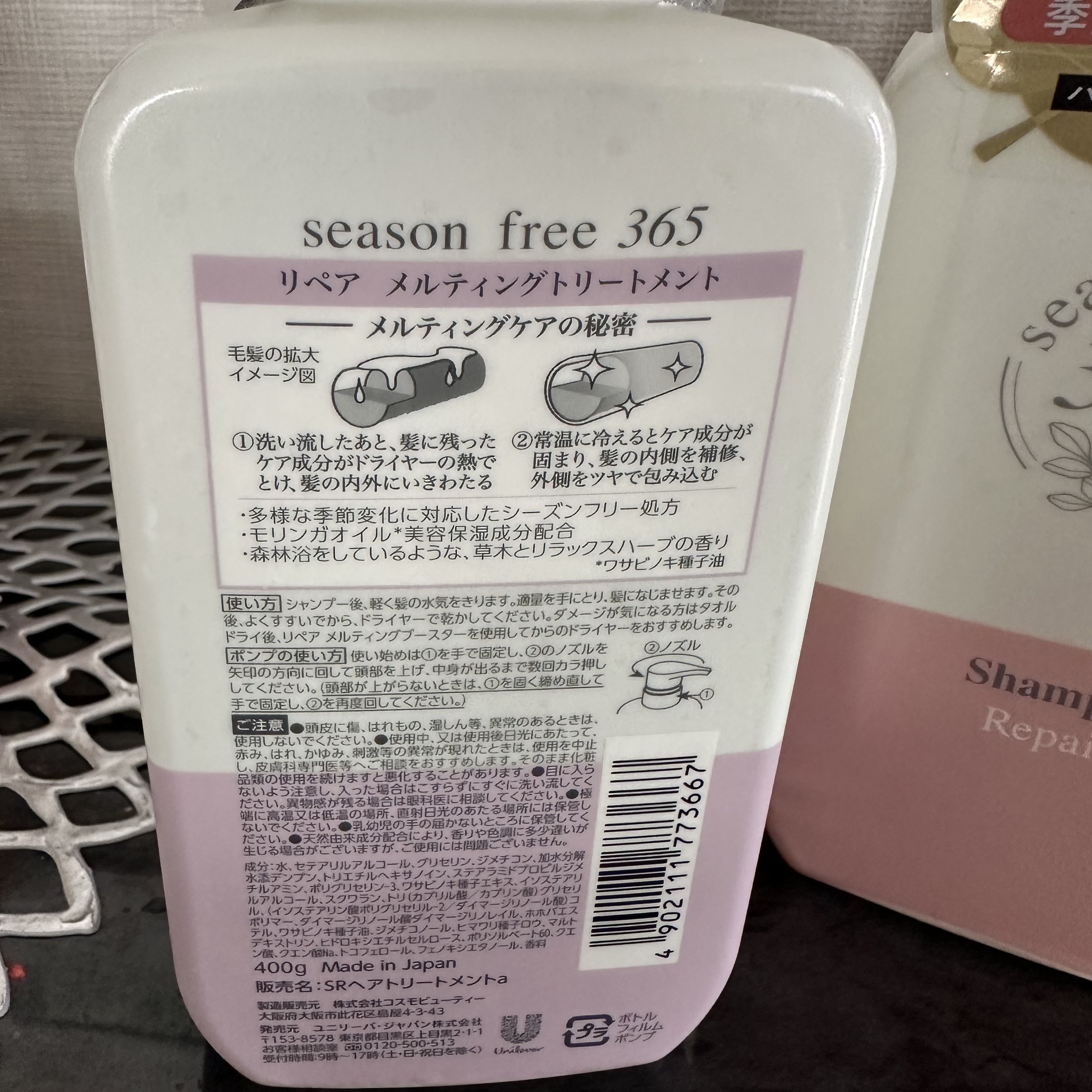 商品詳細情報season free 365 リペア シャンプー/メルティングトリートメント