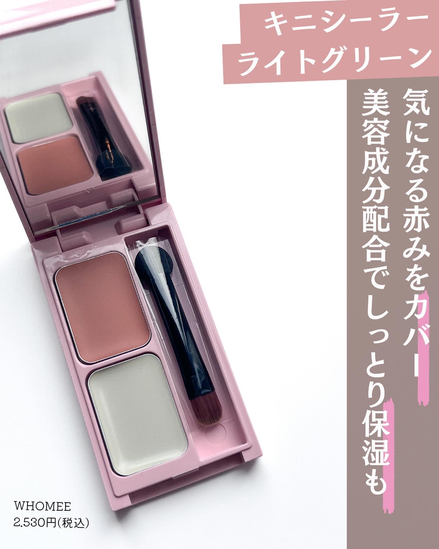 上のオレンジピンクはクマやシミのカバー*にピッタリ◎ 下のライトグリーンは赤みをカバー*しつつ透明感up♡ コンシーラーをのせるのにぴったりなミニコンシーラーブラシも付いてくるの凄くない?!🫣✨ 4/15~順次店頭販売開始🪄