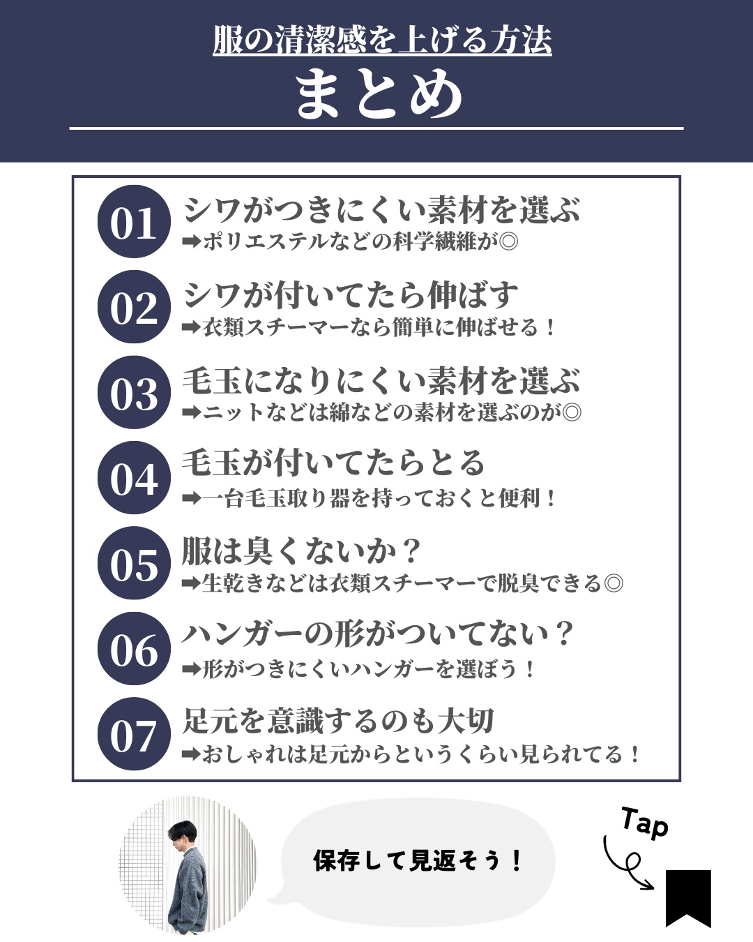 あなたは普段、清潔感を上げるためにどんな服を着ていますか?? 服は見える面積が大きいので、清潔感の印象に与える影響も大! そんな服の清潔感を上げる上で押さえておきたいポイントとコツをご紹介します✨ 是非保存して見返せるようにしておくのがおすすめ◎ これからも一緒に清潔感を上げていきましょう🔥 ーーーーーーーーーーーーーーーーーーーーーーーー このアカウントでは、 「自分を”少し”好きになる」をテーマに清潔感を上げる方法を発信しています。 投稿やブログをきっかけにして、 何か自分を好きになるきっかけ作りをお手伝いできたら嬉しいです! ブログ⇨「ほづのオトコ磨きログ」で検索🔍 他の投稿を見る⇨(@mens_biyou_hozu ) ーーーーーーーーーーーーーーーーーーーーーーーー #メンズ美容 #美容男子 #美容男子と繋がりたい #美容男子部 #清潔感 #清潔感男子 #清潔感アップ #身だしなみ #垢抜け #垢抜け男子 #垢抜ける方法