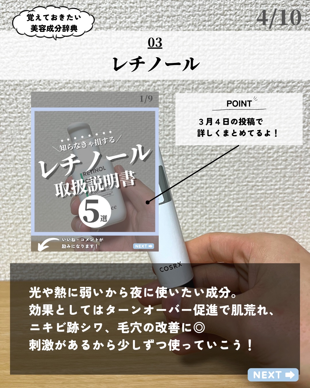 あなたは肌を綺麗にするためにスキンケアにどんな成分を意識して使っていますか?? 今回は是非覚えておいてほしい美容成分を7つご紹介します✨ 自分の肌の悩みに合わせてどんな成分が必要なのかを把握しておくことでより効果的にスキンケアをすることができる✊ 一緒に肌を綺麗にして清潔感を上げていきましょう🔥 ー覚えておきたい美容成分ー 1.トラネキサム酸 2.ビタミンC・ビタミンC誘導体 3.レチノール 4.ナイアシンアミド 5.セラミド 6.グリチルリチン酸ジカリウム 7.エタノール ーーーーーーーーーーーーーーーーーーーーーーーー このアカウントでは、 「自分を”少し”好きになる」をテーマに清潔感を上げる方法を発信しています。 投稿やブログをきっかけにして、 何か自分を好きになるきっかけ作りをお手伝いできたら嬉しいです! ブログ⇨「ほづのオトコ磨きログ」で検索🔍 他の投稿を見る⇨(@mens_biyou_hozu ) ーーーーーーーーーーーーーーーーーーーーーーーー #メンズスキンケア #メンズスキンケア初心者 #スキンケア男子 #美肌ケア #美肌男子 #清潔感 #清潔感アップ #メンズ美容 #美容男子 #美容男子と繋がりたい #美容男子部 #スキンケア悩み #スキンケア方法 #スキンケア #スキンケアマニア #スキンケア用品 #身だしなみ #垢抜け #垢抜け男子 #清潔感男子 #スキンケアメンズ #スキンケアセット #スキンケア初心者 #清潔感がある #垢抜ける方法 #垢抜けたい #垢抜けたい男子 #ビタミンc #レチノール