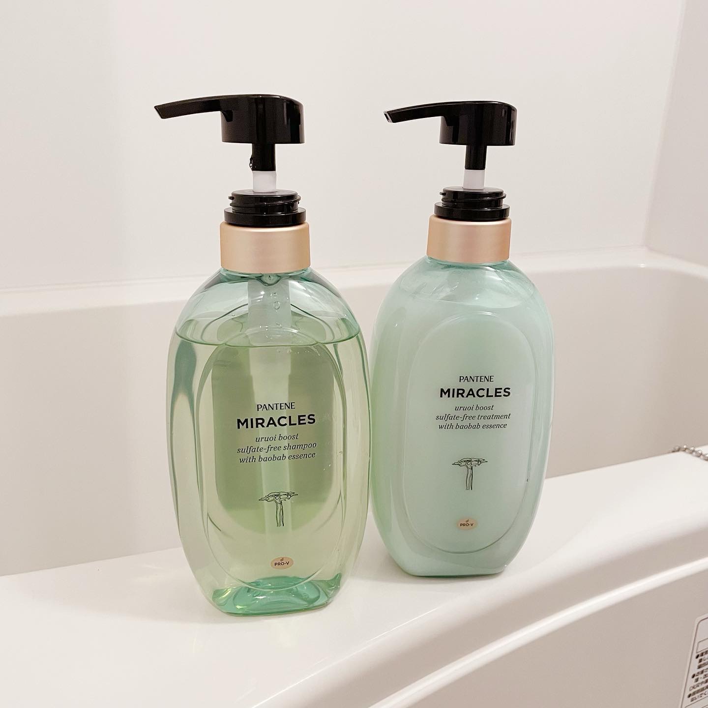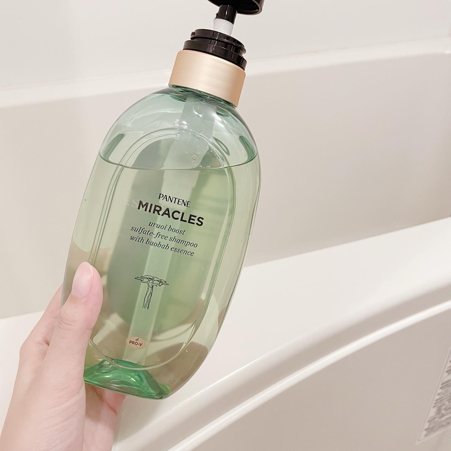 ボトルのフォルムがマカロンみたいでかわいくて気になってた「パンテーン ミラクルズ うるおいブースト」🍑✨ 使ってみたら、香りがめちゃくちゃ良くて家族にも褒められた🥰 クリーンムスクの香りがふんわり続くのが嬉しい💕 シャンプーは泡立ちがよく、泡がしっとりしてる感じ◎ ドライ後の髪もまとまりが良くて、これからも使い続けたい!