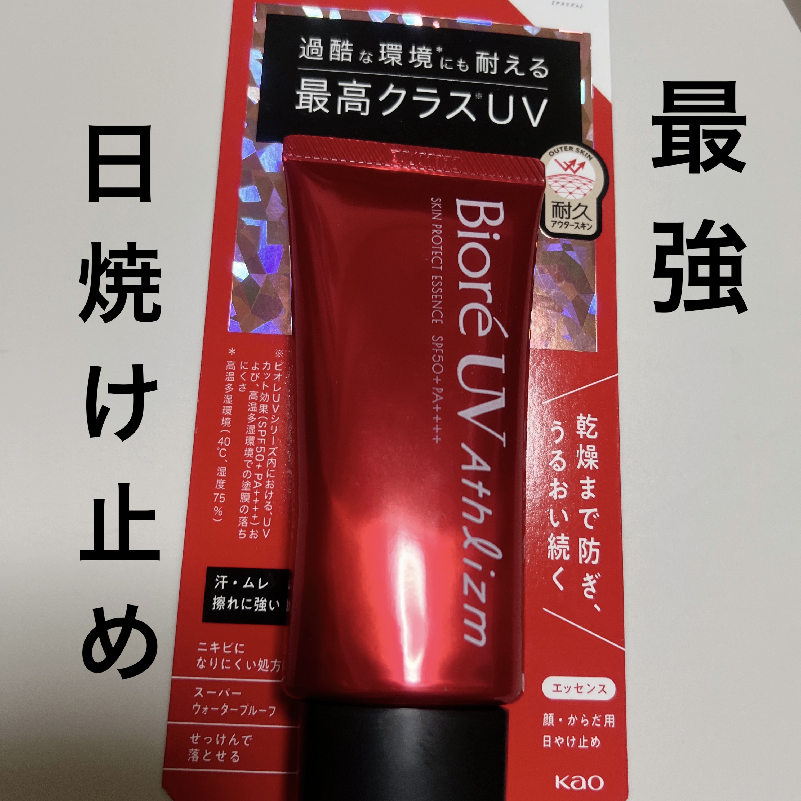 スーと伸びて白浮きしない・石鹸で落とせる・ウォータープルーフ・においが気にならない・日焼けしにくい ※(個人差) 塗った直後は少しベタつきはありますが、数分経つとさらさらになるので、ベタつきが苦手な方も安心して使えます❣️ 過酷な環境にも耐える最高クラスUV。ビオレ独自のタフブーストTechで、均一UV防御塗膜を独自タフブーストポリマーでトップコートし、耐久性を高めます。