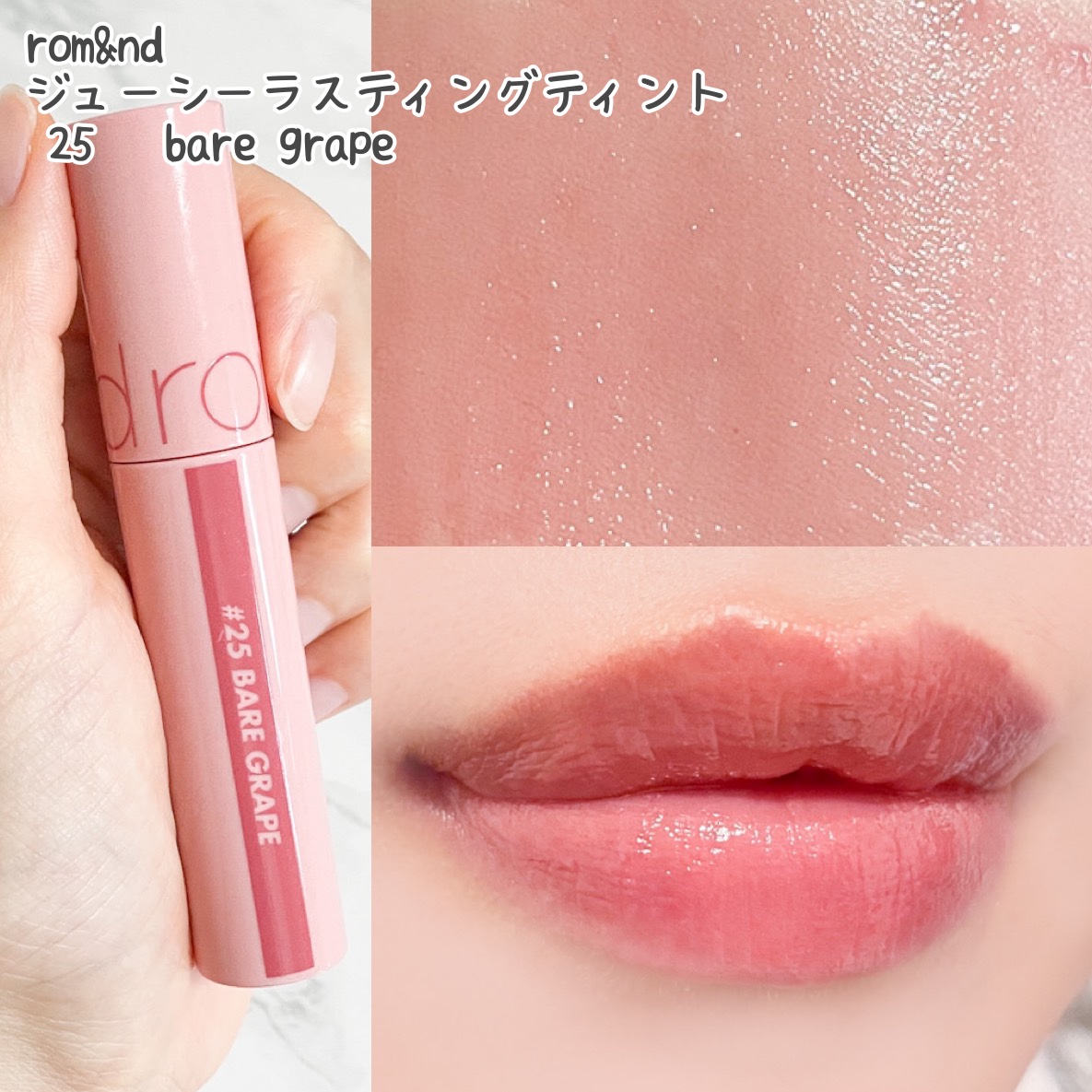 \華やかに仕上がる🌸青みピンク💖/♡rom&ndTHEJUICYLASTINGTINT21GrapeBombかなり青みの強い、高発色のピンクティント。さっとひと塗りするだけで、パキッと華やかな印象に仕上がります!くすみ感がなく、青み強めの強め...