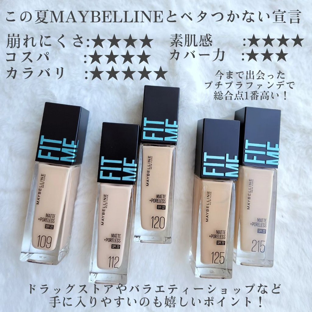 カラバリえぐ!!MAYBELLINENEWYORKフィットミーリキッドファンデーションR112、120ルミマットファンデ人気だけど、、、、フィットミーも負けてないのよ!!軽いつけ心地で肌にぴったり密着し、崩れにくいのがポイント!!毛穴やくすみ...