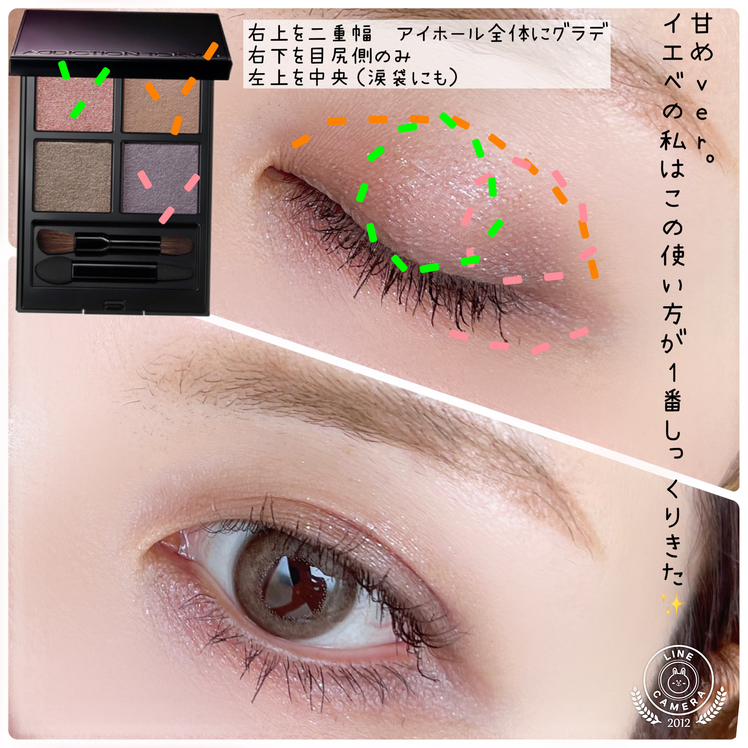 私の手持ちの中でこれは他のカラーとは違う!と言えるものがADDICTIONアディクションザ アイシャドウ パレット103 Under the Starlight ここまでダークなアイシャドウなかなか持っていなくて、パープルメイクは好きだけどくすみが強いものはあるけれど深みが強いものは持っていなかった! 左上のレッドカラーのラメがとにかく可愛くてそのラメの分量次第ではキュートにもよせれる!