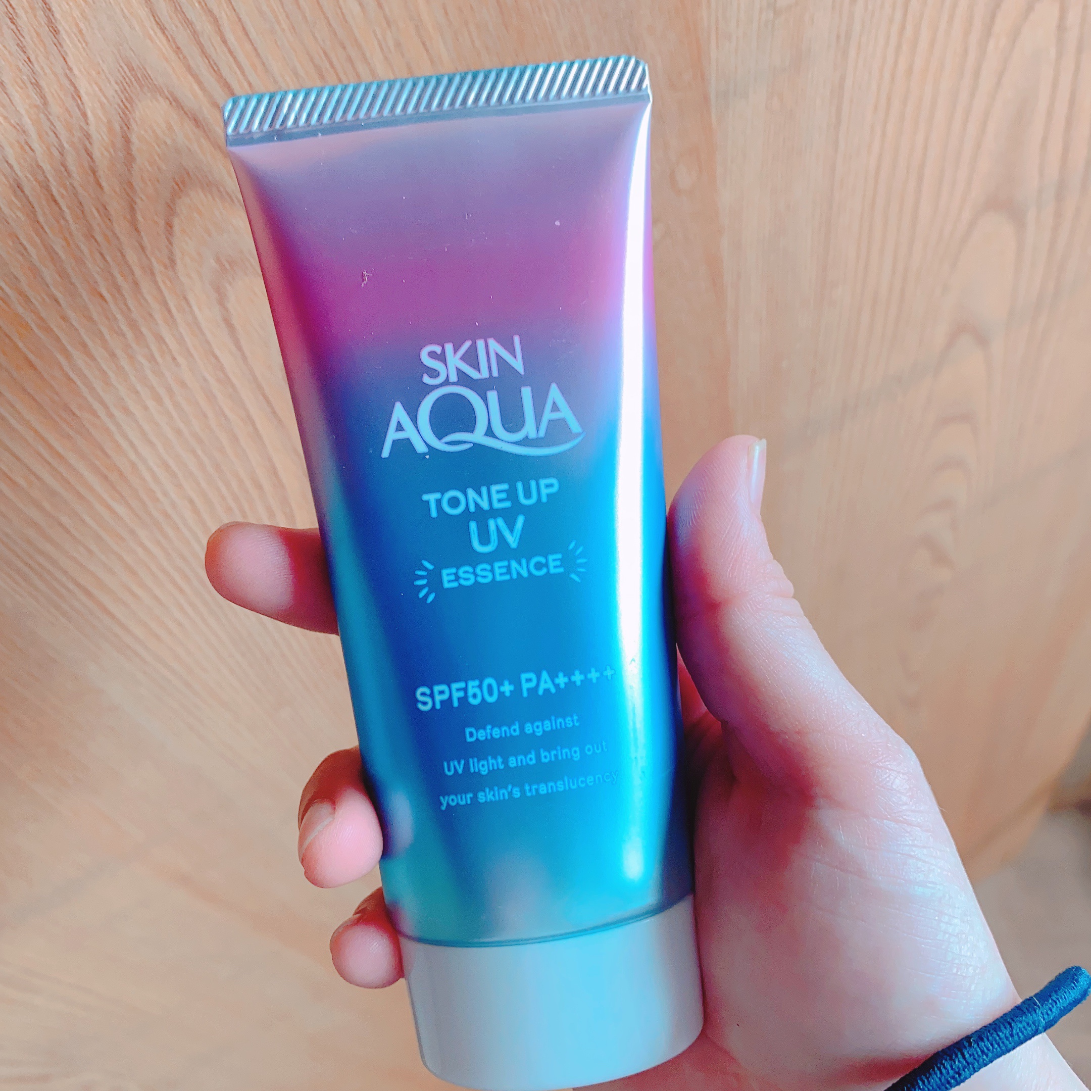 スキンアクアトーンアップUVエッセンスブルー&ラベンダー私愛用の日焼け止めです!いつもはラベンダーを使用していたのですが今年新発売のブルーの日焼け止めも使用しています!どちらも塗るだけでトーンアップするので周りから肌白いねと褒めていただけます...