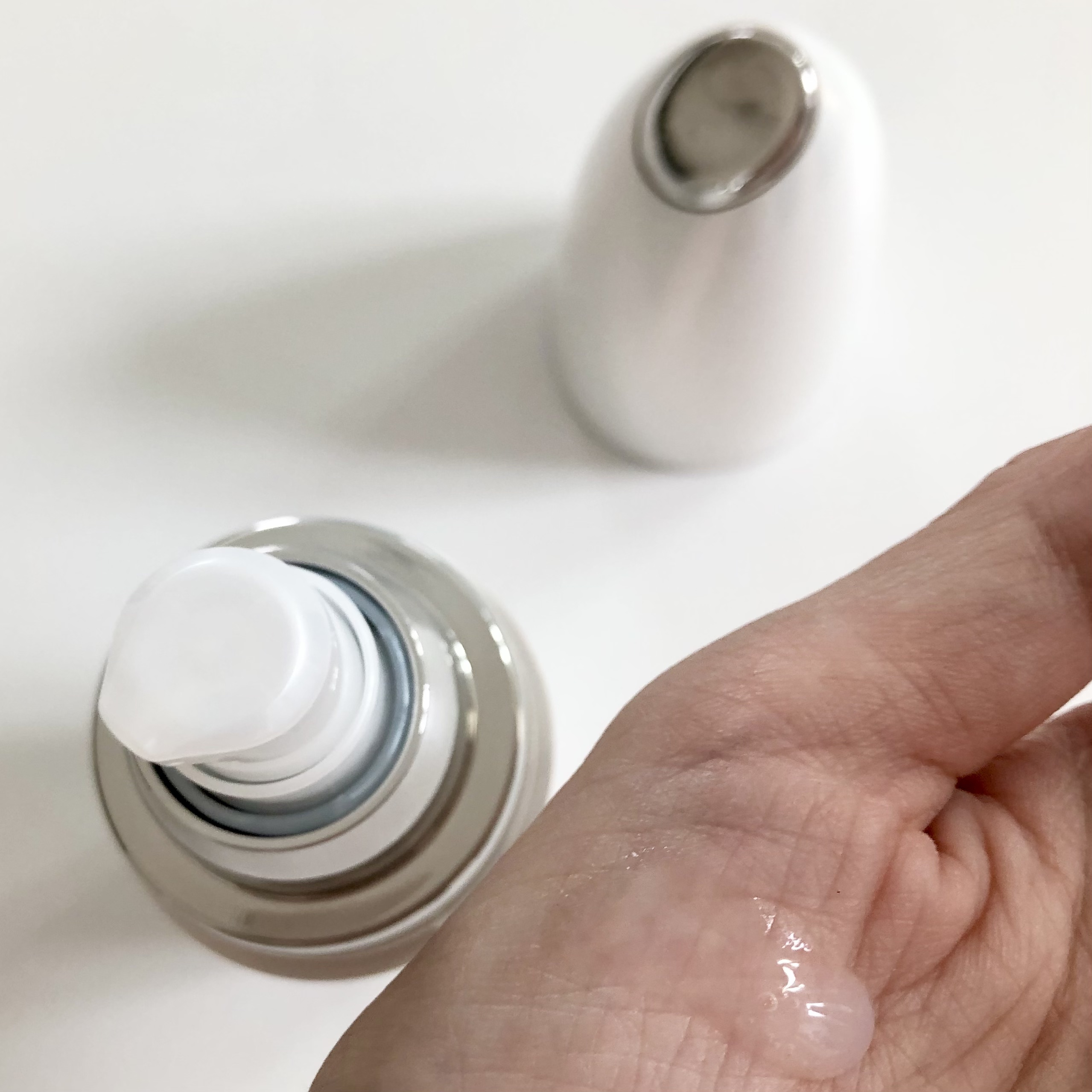 | ほんのり透ける白い液で、テクスチャはゆるめ。よく伸びます。 | 詳細を見る | |
