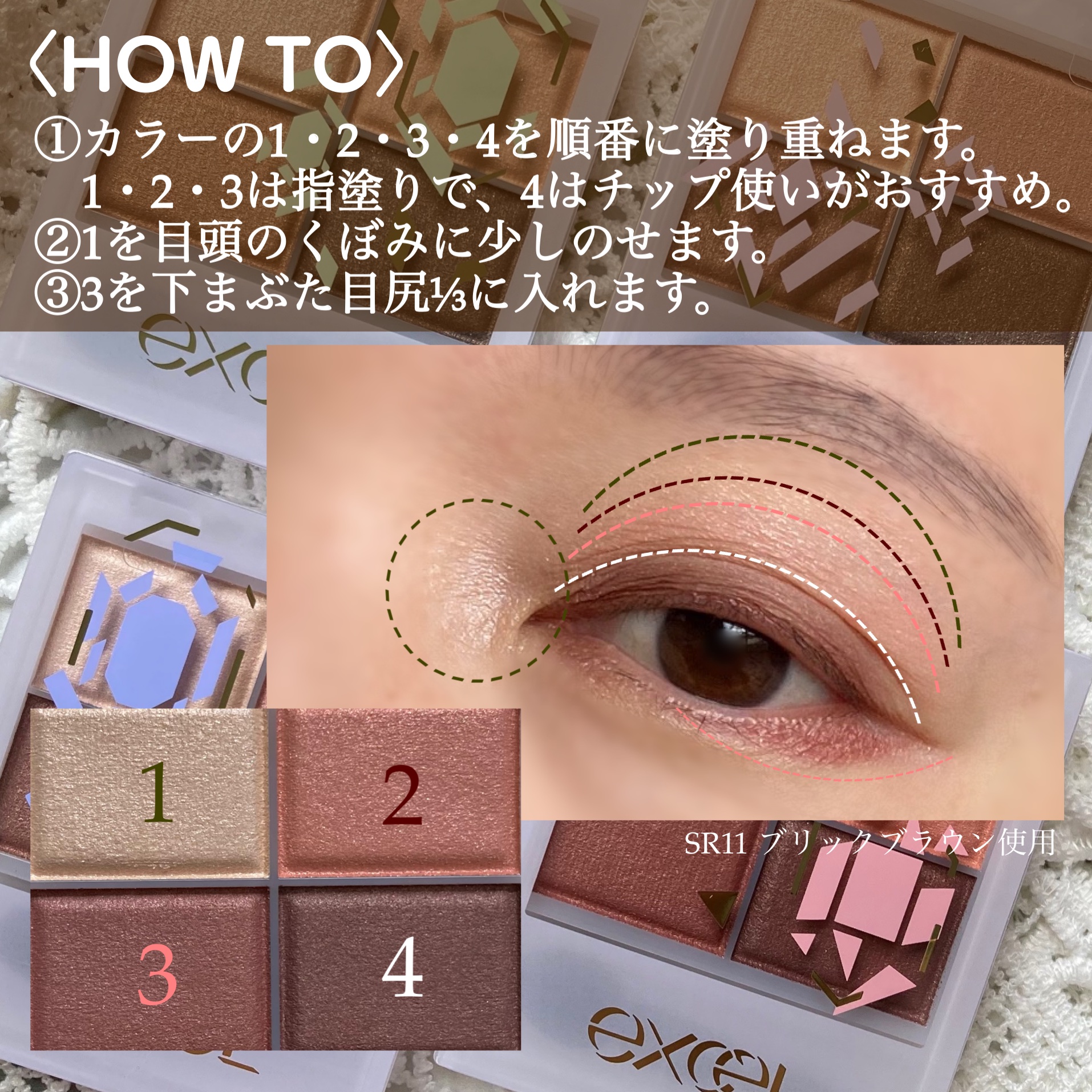 ヴォーチェの付録で付いてきたexcelのスキニーリッチシャドウSR02、リアルブラウンのレビューです✨4色を順に重ねるだけで完成する失敗知らずの極上グラデーション!①ベースまぶたトーンアップ&しっとり質感でアイベース効果✨②ニュアンス目元にや...