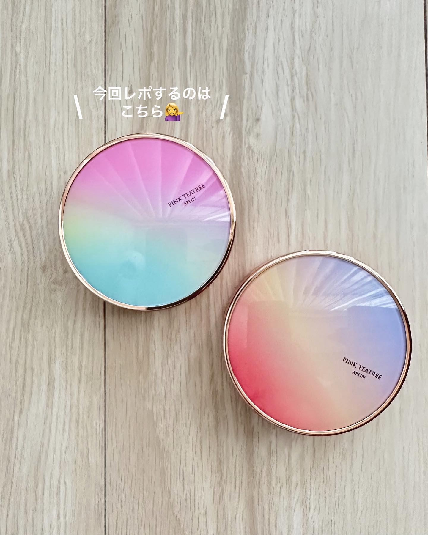 APLIN ピンクティーツリーカバークッション 21号ライトベージュ 2,490円(税込) 少量でよく伸びてハイカバー! 赤みやくすみをしっかりカバ一できるのに、厚塗り感のないなめらかな仕上がり♡ ハイカバーなのにナチュラルなツヤ感とサラッとしつつ、乾燥崩れしにくい仕上がりに感動します!!