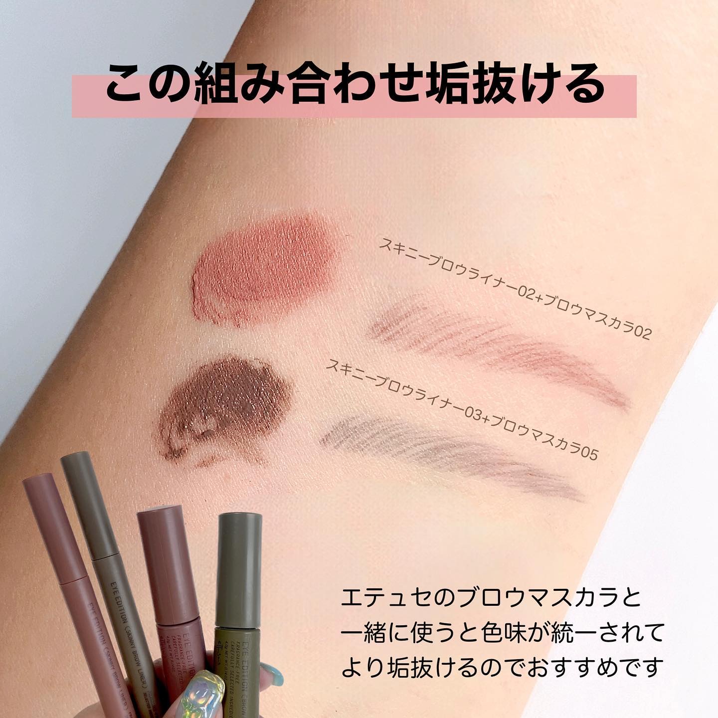 エテュセのスキニーアイブロウライナーから新色のナチュラルブラウンが出たよ♡ 0.01mmの超極細ラインで毛流れに沿って1本1本描き足すように描いていくと自眉のようにリアルな眉が完成👍 濃すぎず薄すぎない絶妙な発色でとっても自然な仕上がり✨