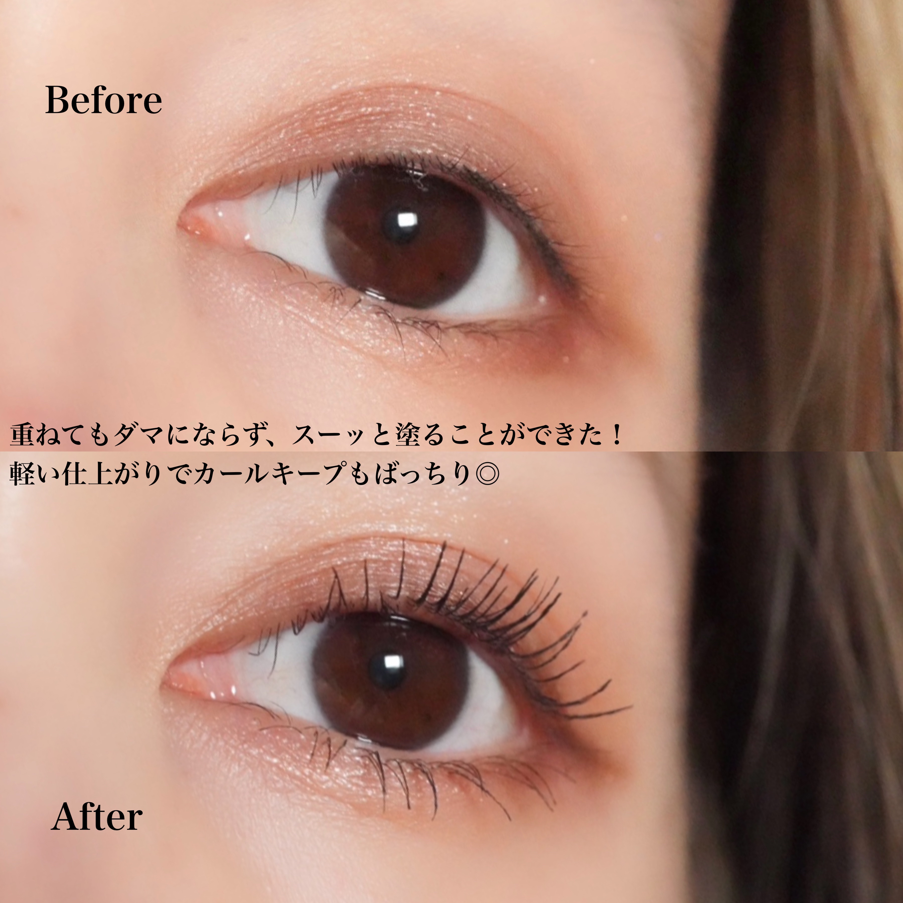 マスカラの重みで落ちることなく 1日中カールキープ+まつ毛ケア〜 長さの異なる毛足のブラシがまつ毛をダマなくキレイに伸ばします ✅ 11種の美容成分でまつ毛をケアします アルギニンオイル ココナッツオイル配合
