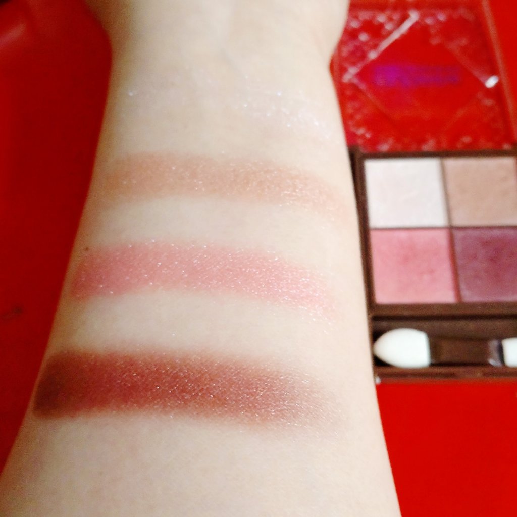 プチプラのクオリティじゃないっ!! 発売前からチェックしていたけれど、ここまで可愛いとは…😆 絶妙カラーで目もとのくすみを飛ばして*明るい印象に🩷 横割りグラデーションでメイクし、立体感をより出したかったので最後に1番左のカラーを上まぶたの真ん中と涙袋にのせています🙆 肌馴染みも良くて粉飛びも感じにくかったです💕 ブラウンの方も店頭に出てたら買おうかな💓