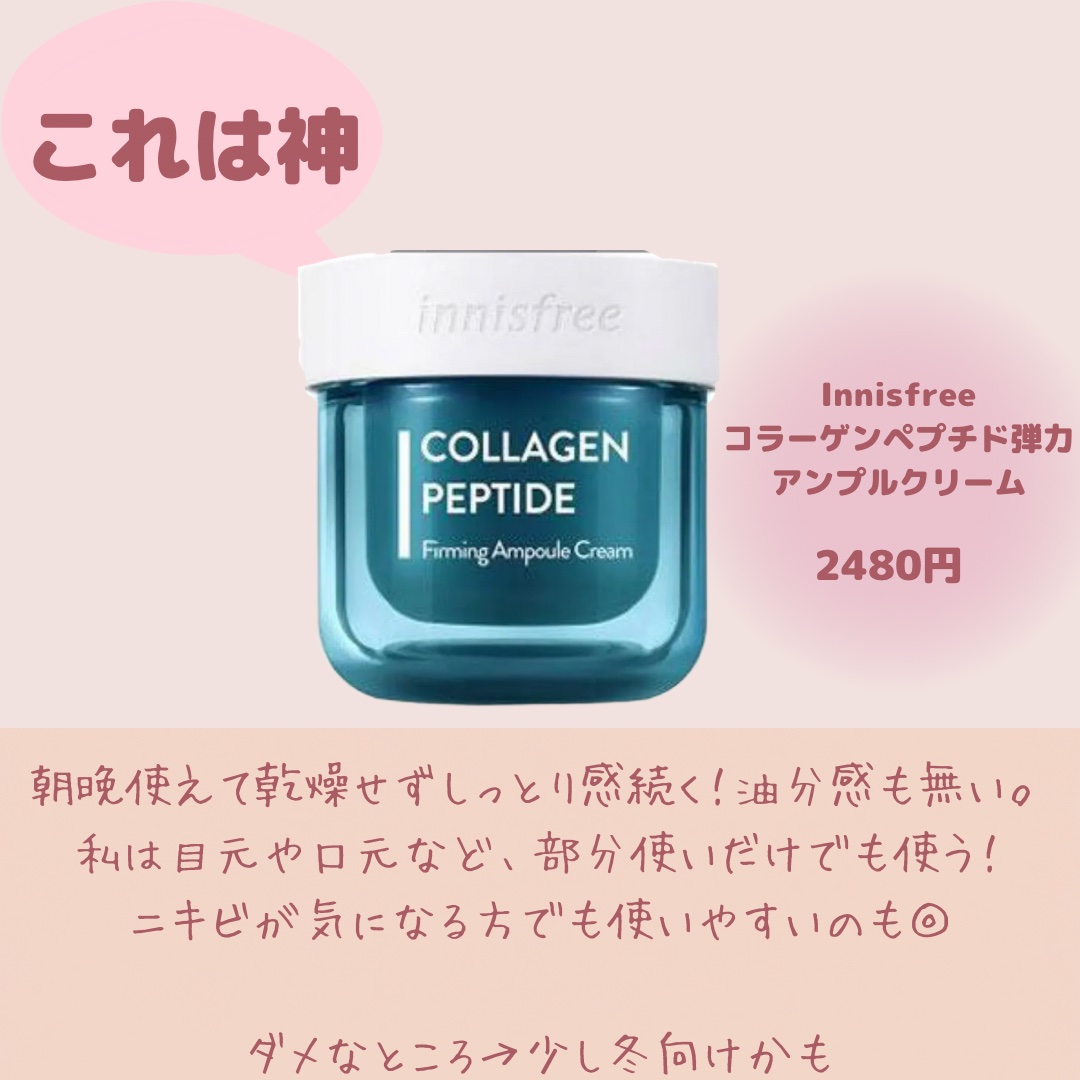 特にほぼ毎日使ってるのはトリデンのダイブインセラム、あと水分感よりも皮脂や毛穴が気になる時はCOSRXのナイアシンアミドとInnisfreeのレチノールシカの組み合わせを使う事が多いかな?🥹🫶 ただこの中にエイジングケア系があまり無いのは、私がなぜかエイジングケア系を使うと口周りとかがピリピリしてしまって荒れてしまうので、選んでないよ😭