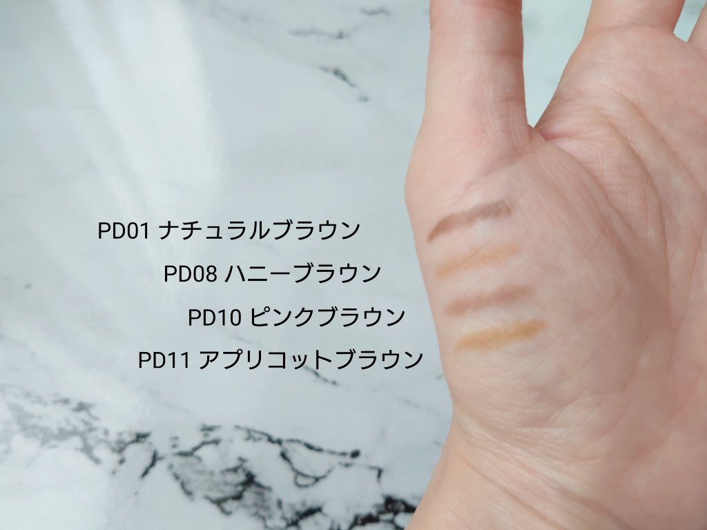 - 【PD01/PD01'23 ナチュラルブラウン】 <ペンシル部> ステアリン酸、モクロウ、水添ヒマシ油、酢酸ステアリン酸スクロース、脂肪酸(C10-30)(コレステリル/ラノステリル)、トリエチルヘキサノイン、パパイア果実エキス、ゴレンシ葉エキス、トコフェロール、BG、スクロース、セスキオレイン酸ソルビタン、水、マイカ、酸化チタン、酸化鉄 <パウダー部> タルク、トリイソステアリン、ヒドロキシステアリン酸エチルヘキシル、シリカ、ジメチコン、パパイア果実エキス、ゴレンシ葉エキス、トコフェロール、BG、イソステアリン酸ソルビタン、スクロース、ステアリン酸Mg、テトラ(ヒドロキシステアリン酸/イソステアリン酸)ジペンタエリスリチル、メチコン、水、メチルパラベン、マイカ、酸化チタン、酸化鉄 【PD02/PD02'23 キャメルブラウン】 <ペンシル部> ステアリン酸、モクロウ、水添ヒマシ油、酢酸ステアリン酸スクロース、脂肪酸(C10-30)(コレステリル/ラノステリル)、トリエチルヘキサノイン、パパイア果実エキス、ゴレンシ葉エキス、トコフェロール、BG、スクロース、セスキオレイン酸ソルビタン、水、マイカ、酸化チタン、酸化鉄 <パウダー部> タルク、トリイソステアリン、ヒドロキシステアリン酸エチルヘキシル、シリカ、ジメチコン、パパイア果実エキス、ゴレンシ葉エキス、トコフェロール、BG、イソステアリン酸ソルビタン、スクロース、ステアリン酸Mg、テトラ(ヒドロキシステアリン酸/イソステアリン酸)ジペンタエリスリチル、メチコン、水、メチルパラベン、マイカ、酸化チタン、酸化鉄 【PD05/PD05'23 グレイッシュブラウン】 <ペンシル部> ステアリン酸、モクロウ、水添ヒマシ油、酢酸ステアリン酸スクロース、脂肪酸(C10-30)(コレステリル/ラノステリル)、トリエチルヘキサノイン、パパイア果実エキス、ゴレンシ葉エキス、トコフェロール、BG、スクロース、セスキオレイン酸ソルビタン、水、マイカ、酸化チタン、酸化鉄 <パウダー部> タルク、トリイソステアリン、ヒドロキシステアリン酸エチルヘキシル、シリカ、ジメチコン、パパイア果実エキス、ゴレンシ葉エキス、トコフェロール、BG、イソステアリン酸ソルビタン、スクロース、ステアリン酸Mg、テトラ(ヒドロキシステアリン酸/イソステアリン酸)ジペンタエリスリチル、メチコン、水、メチルパラベン、マイカ、酸化チタン、酸化鉄 【PD07/PD07'23 モカブラウン】 <ペンシル部> ステアリン酸、モクロウ、水添ヒマシ油、酢酸ステアリン酸スクロース、脂肪酸(C10-30)(コレステリル/ラノステリル)、トリエチルヘキサノイン、パパイア果実エキス、ゴレンシ葉エキス、トコフェロール、BG、スクロース、セスキオレイン酸ソルビタン、水、マイカ、酸化チタン、酸化鉄 <パウダー部> タルク、トリイソステアリン、ヒドロキシステアリン酸エチルヘキシル、シリカ、ジメチコン、パパイア果実エキス、ゴレンシ葉エキス、トコフェロール、BG、イソステアリン酸ソルビタン、スクロース、ステアリン酸Mg、テトラ(ヒドロキシステアリン酸/イソステアリン酸)ジペンタエリスリチル、メチコン、水、メチルパラベン、マイカ、酸化チタン、酸化鉄 【PD08 ハニーブラウン】 <ペンシル部> ステアリン酸、モクロウ、水添ヒマシ油、酢酸ステアリン酸スクロース、脂肪酸(C10-30)(コレステリル/ラノステリル)、トリエチルヘキサノイン、パパイア果実エキス、ゴレンシ葉エキス、トコフェロール、BG、スクロース、セスキオレイン酸ソルビタン、水、マイカ、酸化チタン、酸化鉄 <パウダー部> タルク、トリイソステアリン、ヒドロキシステアリン酸エチルヘキシル、シリカ、ジメチコン、パパイア果実エキス、ゴレンシ葉エキス、トコフェロール、BG、イソステアリン酸ソルビタン、スクロース、ステアリン酸Mg、テトラ(ヒドロキシステアリン酸/イソステアリン酸)ジペンタエリスリチル、メチコン、水、メチルパラベン、マイカ、酸化チタン、酸化鉄 【PD10 ピンクブラウン】 <ペンシル部> ステアリン酸、モクロウ、水添ヒマシ油、トリ酢酸テトラステアリン酸スクロース、脂肪酸(C10-30)(コレステロール/ラノステロール)エステルズ、トリエチルヘキサノイン、パパイア果実エキス、ゴレンシ葉エキス、BG、スクロース、セスキオレイン酸ソルビタン、トコフェロール、水、ジメチコン、マイカ、酸化チタン、酸化鉄 <パウダー部> タルク、トリイソステアリン、ヒドロキシステアリン酸エチルヘキシル、シリカ、ジメチコン、パパイア果実エキス、ゴレンシ葉エキス、トコフェロール、BG、イソステアリン酸ソルビタン、スクロース、ステアリン酸Mg、テトラ(ヒドロキシステアリン酸/イソステアリン酸)ジペンタエリスリチル、メチコン、水、メチルパラベン、マイカ、酸化チタン、酸化鉄 【PD11 アプリコットブラウン】 <ペンシル部> ステアリン酸、モクロウ、水添ヒマシ油、トリ酢酸テトラステアリン酸スクロース、脂肪酸(C10-30)(コレステロール/ラノステロール)エステルズ、ト