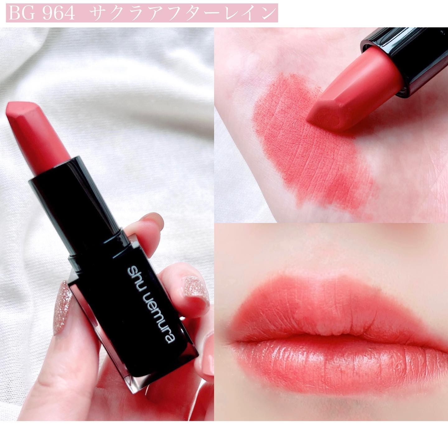 #ふんわり秋色メイク動画#小田切ヒロさんのYouTubeを参考にさせて頂きました✨(前田敦子さん出演の回です)shuuemuraキヌルージュマットBG964サクラアフターレイン¥5,280#マットリップ#キヌマット#スウォッチ#メイクレシピ#...