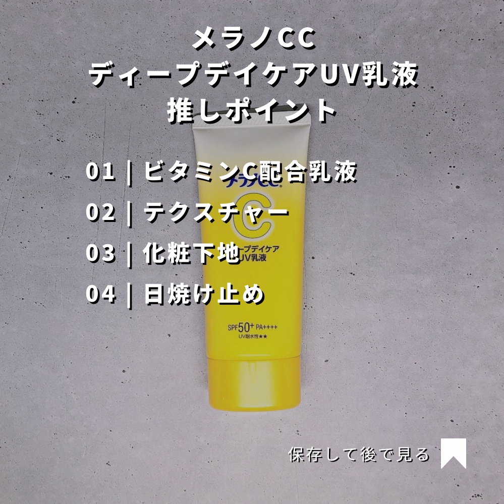 ▶メラノCC/ディープデイケアUV乳液ロート製薬様のメラノCCシリーズは、洗顔・化粧水・乳液・美容液と一通り使ったことがあるのですがなかでも、ディープデイケア乳液がお気に入り😚もう3回ほどリピートしています!✅おすすめポイント・うるおい成分と...