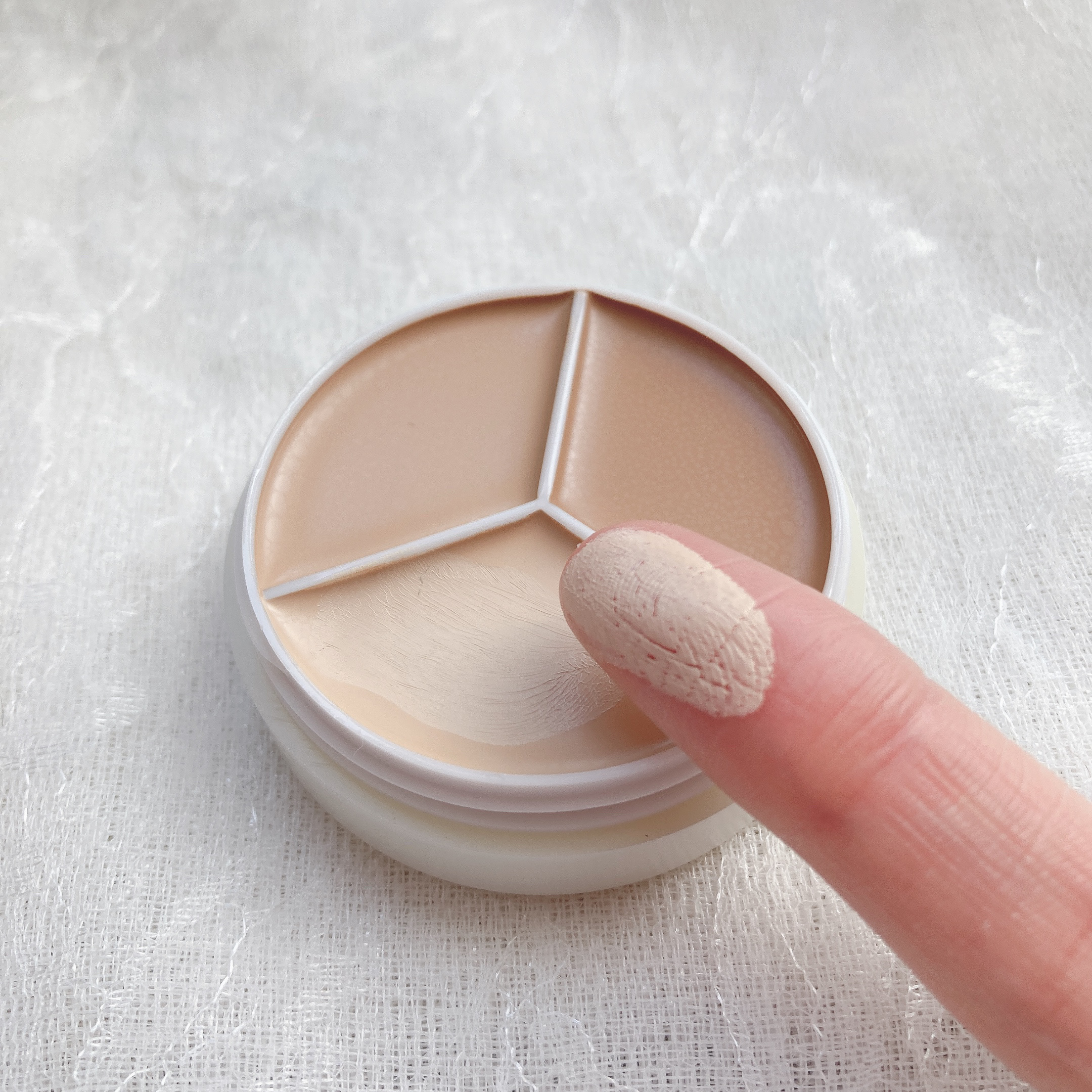- クマからニキビ跡、シミまでこれ1つでカバー。 3色タイプだからこそ、気になるところや肌色を選ばずにご使用いただけます。 リキッドタイプを圧縮した高濃度バームのため高カバー高密着*¹を実現。 コンシーラーだけでなくコントアとしても使用可能です。 *1メーカー比