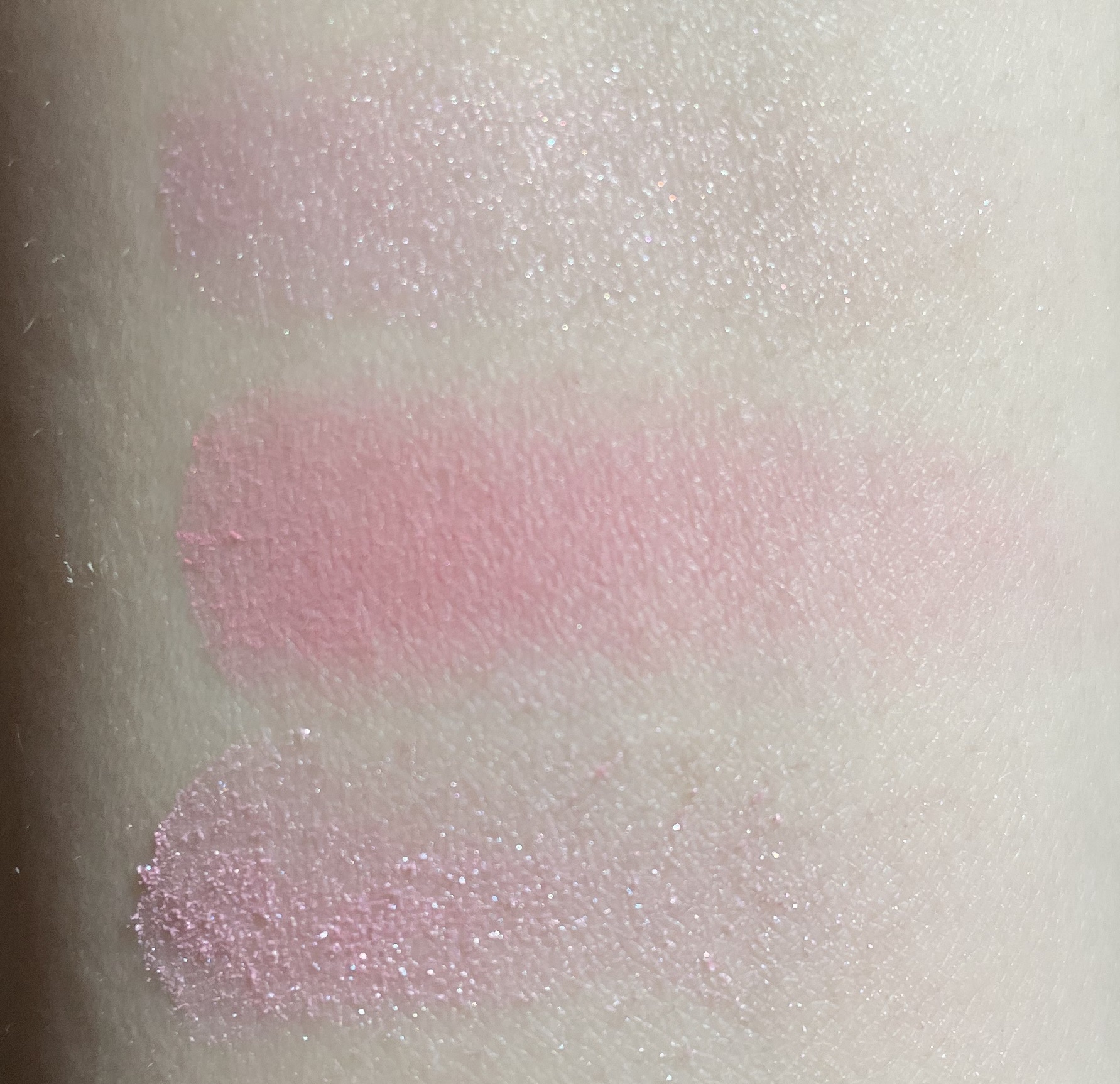 見た目はメタリックで、いつ使うんや!!っていう見た目してますが、塗ってみるとそんなにメタリック感はなくて、青ラメや青みを足したりするのに便利です✨ 他の色のリップに重ねると、ラメ感だけで無く少し青みが足されてくすんだ感じになります。 今回はロムアンドのファンキーメロンとMACのヤシュに重ねてみました!どっちともラメは入っていないリップです。ニュアンスが変わっていつもとちょっと違うメイクをしたい時に使える✨