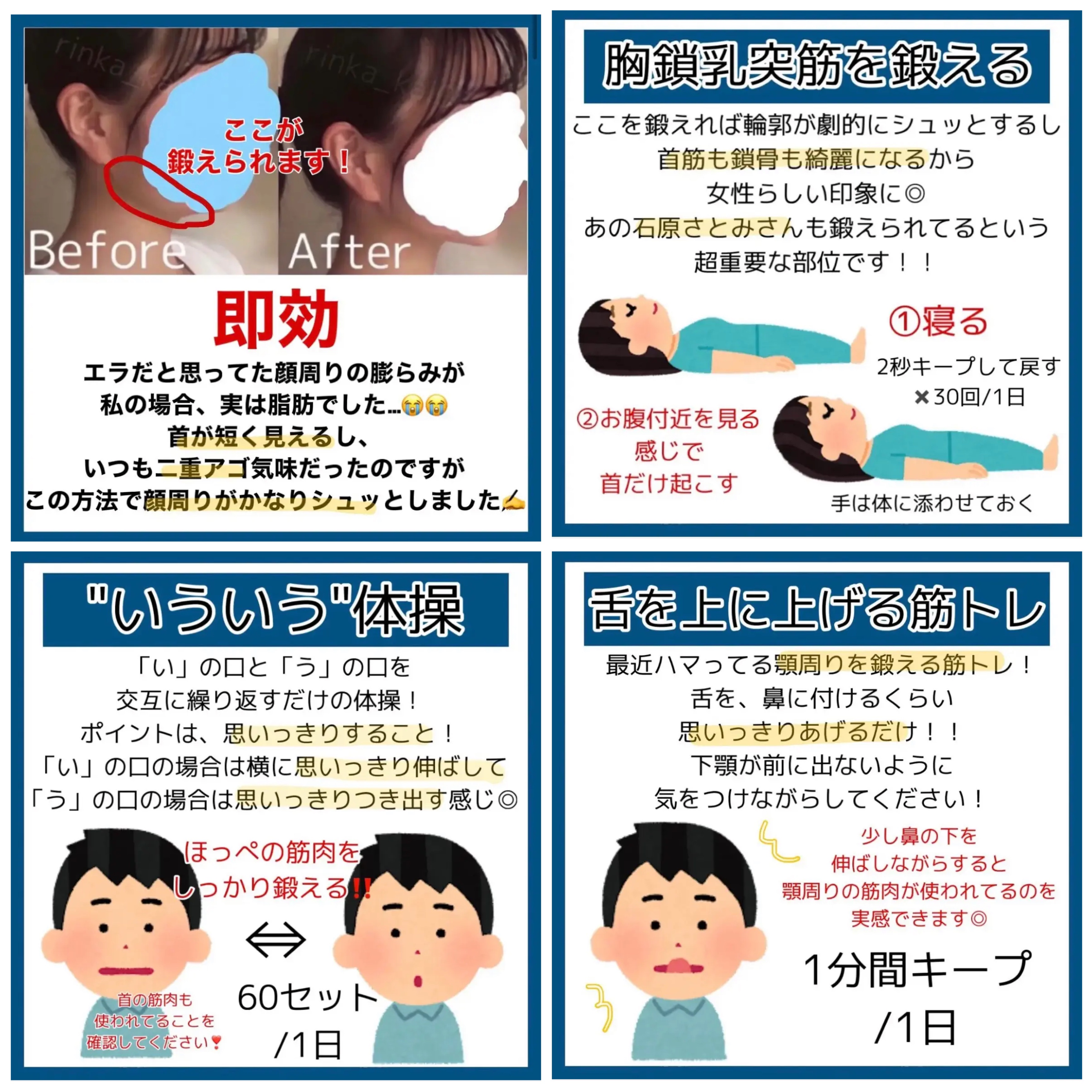 私が全力でオススメしたい、 顎下のお肉を落として、顔をシュッとさせる超簡単な筋トレをご紹介します!!! 用意する物もなく、何かしながらでも出来る筋トレです🙆🏻👌✨ 毎日継続すると、1週間以内に効果が出ると思います!! (見た目に出るのはもう少し時間がかかりますが、触るとスッキリしたのがほんっっに分かる!!!) 筋トレ❶ 筋トレ❷ すっごく効果があるので、皆さんもぜひ試してみてください!!