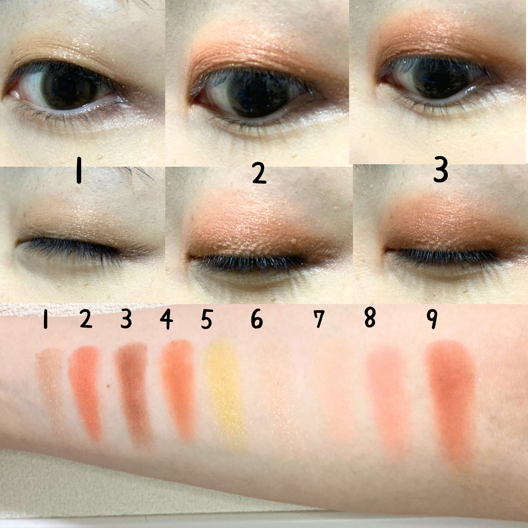 - 01 <a/f> ジメチコン、トリ(カプリル酸/カプリン酸)グリセリル、(ジメチコン/ビニルジメチコン) クロスポリマー、タルク、カルナウバロウ、クロルフェネシン、デヒドロ酢酸Na、ラウロイルリシン、トコフェロール、ホウケイ酸(Ca/Al)、マイカ、(PET/ポリメタクリル酸メチル)ラミネート、酸化チタン、酸化鉄、赤226、グンジョウ、酸化スズ <b/e> トリ(カプリル酸/カプリン酸)グリセリル、シリカ、ダイマージリノール酸ジ(イソステアリル/フィトステリル)、合成フルオロフロゴパイト、ダイマージリノール酸ダイマージリノレイルビス(ベヘニル/イソステアリル/フィトステリル)、水酸化Al、カルナウバロウ、トコフェロール、ホウケイ酸(Ca/Al)、マイカ、酸化チタン、酸化鉄、グンジョウ、赤226、コンジョウ、酸化スズ <c> アルミナ、合成フルオロフロゴパイト、タルク、ジフェニルシロキシフェニルトリメチコン、水添ポリデセン、(イソステアリン酸ポリグリセリル-2/ダイマージリノール酸)コポリマー、ジメチコン、硫酸Ba、ジステアリン酸Al、クロルフェネシン、デヒドロ酢酸Na、ステアリン酸Mg、トコフェロール、酸化チタン、マイカ、酸化鉄、グンジョウ、酸化スズ <d/g/h/i> タルク、合成フルオロフロゴパイト、窒化ホウ素、スクワラン、ナイロン-12、(ビニルジメチコン/メチコンシルセスキオキサン)クロスポリマー、ペンチレングリコール、ホホバ種子油、デヒドロ酢酸Na、水酸化Al、シア脂、トコフェロール、マイカ、酸化鉄、酸化チタン、赤226、グンジョウ、ホウケイ酸(Ca/Al)、酸化スズ 02 <a> ジメチコン、トリ(カプリル酸/カプリン酸)グリセリル、(ジメチコン/ビニルジメチコン)クロスポリマー、タルク、カルナウバロウ、クロルフェネシン、デヒドロ酢酸Na、ラウロイルリシン、トコフェロール、マイカ、ホウケイ酸(Ca/Al)、酸化チタン、酸化鉄、酸化スズ <b> アルミナ、タルク、合成フルオロフロゴパイト、ジフェニルシロキシフェニルトリメチコン、水添ポリデセン、(イソステアリン酸ポリグリセリル-2/ダイマージリノール酸)コポリマー、ジメチコン、硫酸Ba、ジステアリン酸Al、ステアリン酸Mg、クロルフェネシン、デヒドロ酢酸Na、トコフェロール、酸化チタン、マイカ、酸化鉄、赤226、グンジョウ、酸化スズ <c/e/f> トリ(カプリル酸/カプリン酸)グリセリル、シリカ、ダイマージリノール酸ジ(イソステアリル/フィトステリル)、ダイマージリノール酸ダイマージリノレイルビス(ベヘニル/イソステアリル/フィトステリル)、水酸化Al、合成フルオロフロゴパイト、カルナウバロウ、トコフェロール、マイカ、ホウケイ酸(Ca/Al)、酸化チタン、酸化鉄、黄4、赤226、グンジョウ、酸化スズ <d/g/h/i> タルク、合成フルオロフロゴパイト、窒化ホウ素、スクワラン、ナイロン-12、(ビニルジメチコン/メチコンシルセスキオキサン)クロスポリマー、ペンチレングリコール、ホホバ種子油、デヒドロ酢酸Na、水酸化Al、シア脂、トコフェロール、マイカ、酸化鉄、酸化チタン、ホウケイ酸(Ca/Al)、赤226、黄4、グンジョウ、酸化スズ ※アルファベットはパレットを正面から見た1段目左からabc、2段目左からdef、3段目左からghiの順です。