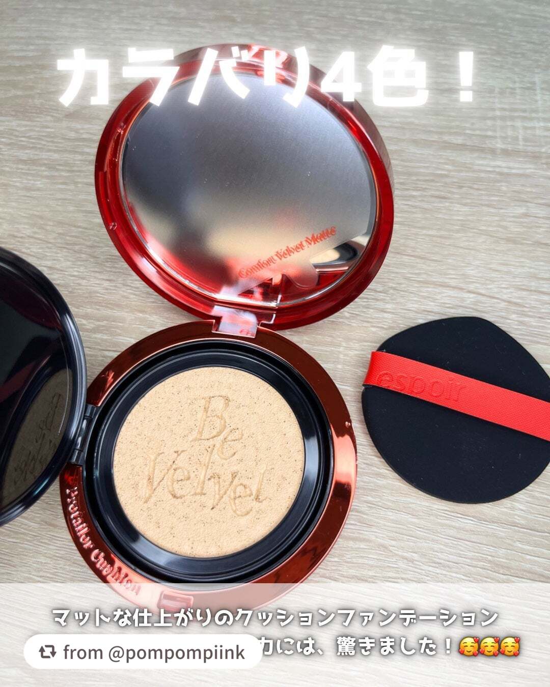 クッション選びのポイントはなんですか🤔?今回は、クッションマッチプのespoir💕クッションファンデを徹底比較します!୨୧ビーベルベットカバークッション真っ赤が目を引くこのクッション👀❤️🔥ベルベットマットなやわからいのにマットの不思議なテ...