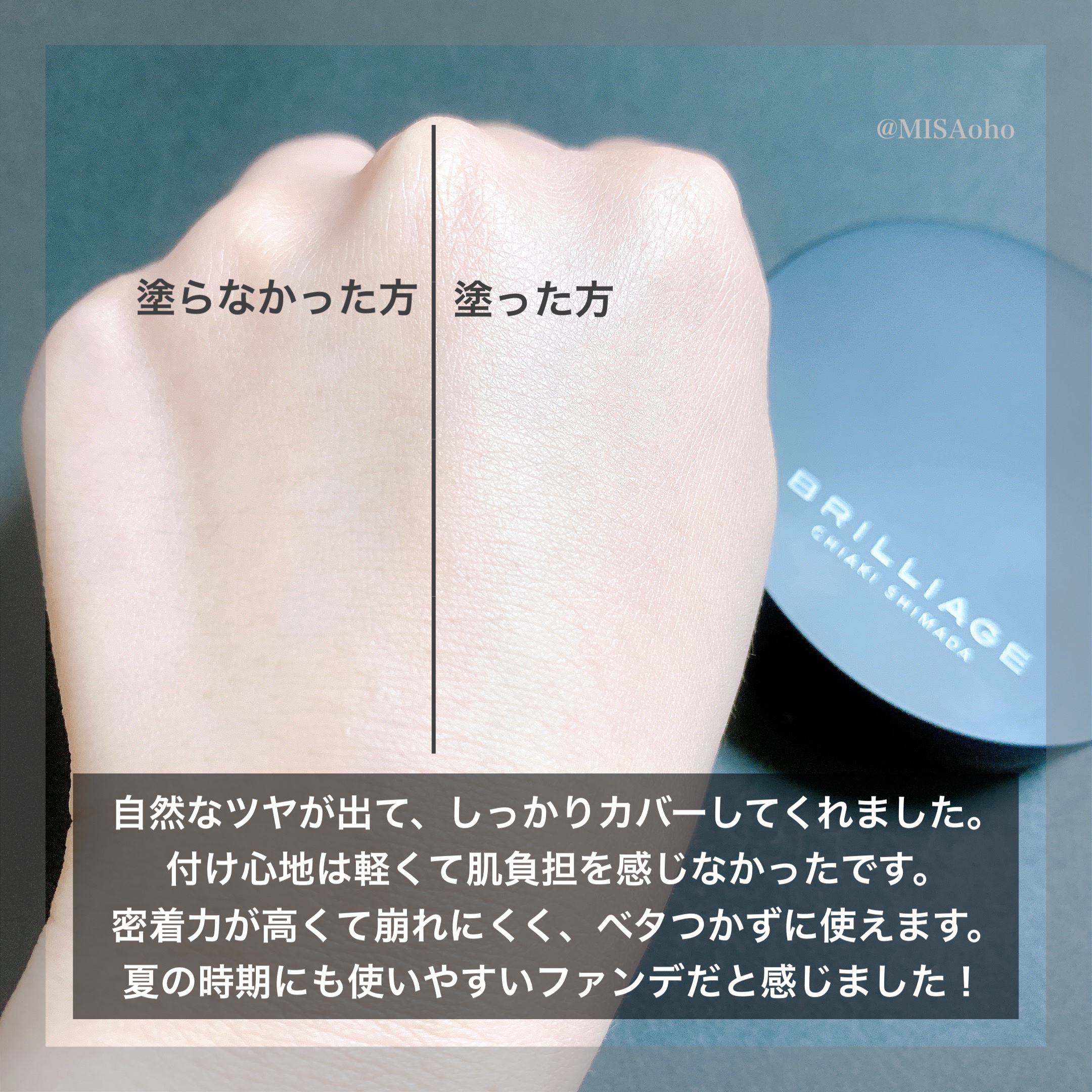 使用感で驚いたのはそのみずみずしさ! それこそプライマーを使用しているような感覚です。 カバー力はそれほど高くなく、ナチュラルでツヤ感のある仕上がりが好みの方におすすめ😆 使用後は少しペタッとした感覚が残ります。みずみずしさが高い分、乾燥しやすい方にはおすすめですが、脂性肌さんには少し重いのかなと感じました。