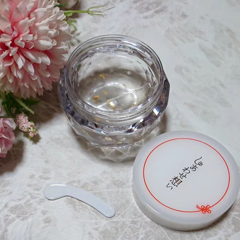 - オールインワンジェル『しあわせ想い』は、幸せのシンボルである四つ葉のクローバーから作られた成分*や、金沢産の高級金箔を配合。時短・美・幸運と、高品質スキンケア化粧品でありながら【縁起物】としての要素をプラスした、すっぴん笑顔が輝くスキンケア化粧品です。また3D形状記憶ジェル**によりお肌にハリを与え、高い弾力性を発揮。さらに独自処方成分により角質層への保湿成分の浸透力をサポートします。 *シロツメクサエキス(保湿成分) **形状を変化させても元の状態に戻るジェル