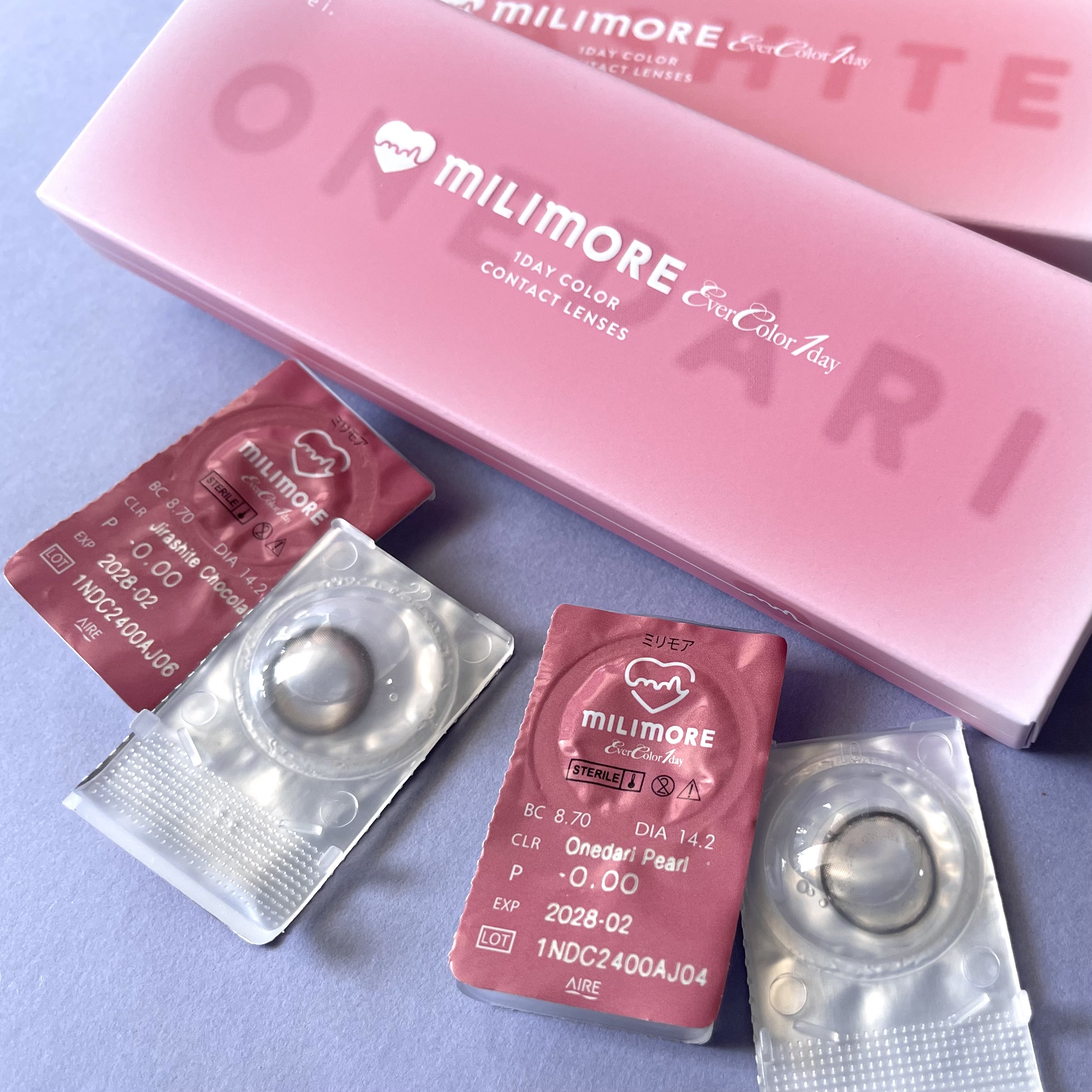 - 【商品特長】 「1mmでももっとかわいくなりたい」 エバーカラーワンデーシリーズ定番商品では初となるDIA14.2mm。 かわいさと着け心地の良さにこだわった、あざと可愛く盛れるラインナップ。 【製品スペック】 □販売名:ミリモア □装用期間:1日使い捨てタイプ □入数:1箱 10枚入 □BC:8.7mm □DIA:14.2mm □含水率:60.0% □中心厚:0.08mm(-3.00Dの場合) □PWR:±0.00( 度なし )/-0.50~-5.00( -0.25Step )/-5.50~-8.00( -0.50Step ) □承認番号:30200BZX00014A04 □製造販売元:株式会社アイレ □販売元:株式会社アイセイ カラーコンタクトレンズの不適正使用による眼障害の危険性等などがあります。 ●コンタクトレンズは高度管理医療機器です。不十分な洗浄・消毒など不適切なケアや、長時間・交換期間を超えた装用により、アレルギー性結膜炎、角膜感染症、角膜潰瘍等の重篤な眼障害が発生する危険性があります ●ご使用前に取扱説明書を確認してください 使用上の留意事項 ●眼科医院等を受診してからお求めください ●眼に異常を感じたら直ちにレンズ使用を中止し、お近くの眼科等で診察を受けてください ●医師の指示にしたがってご使用ください ●コンタクトレンズを装用する場合、自覚症状がなくても、眼科医院等での定期検査を受けてください ●レンズに不具合がある場合は使用しないでください