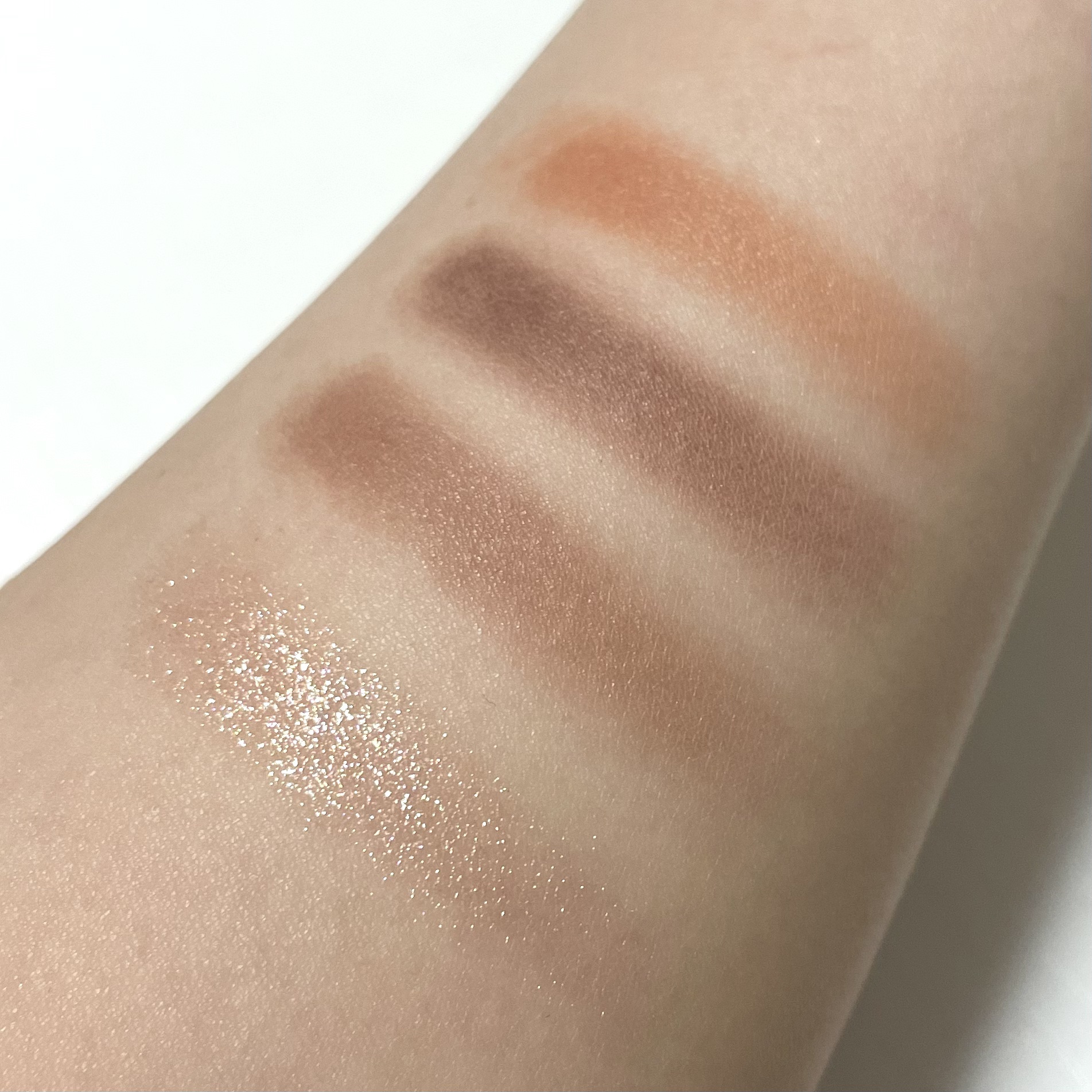 - シルキースフレアイズの姉妹品♡ 肌に溶け込むような透けマットシャドウ 透け感のある柔らかい仕上がりになるマット3色と、透け発色の繊細ラメ1色のパレットシャドウ♡ 完全マットアイや、ラメ×マットアイなど、メイクのパターンを楽しみましょう!