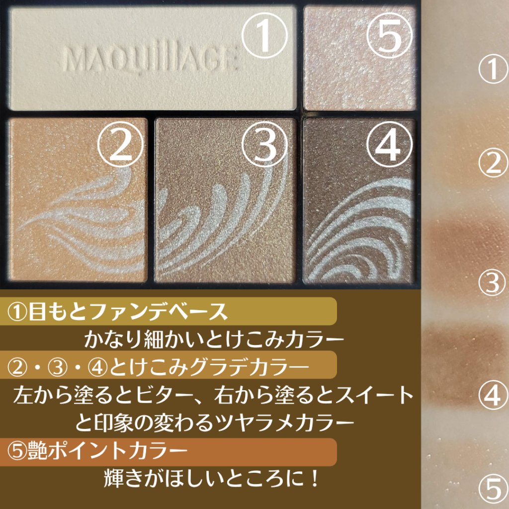 - 瞳色になじむことで、目を自然に大きく見せるアイシャドウ。 200人以上の瞳色研究から生まれた、瞳色に合わせて選べる5つのカラー。 パレット下段の3色のブラウンを左から順に重ねると陰影が際立つ仕上がりに、右から順に重ねると繊細な陰影で優しい印象に。 8時間化粧もち(色・つや・くすみのなさ)データ取得済み ※メーカー調べ。効果には個人差があります。 保湿成分「スーパーヒアルロン酸(アセチルヒアルロン酸Na)」配合。