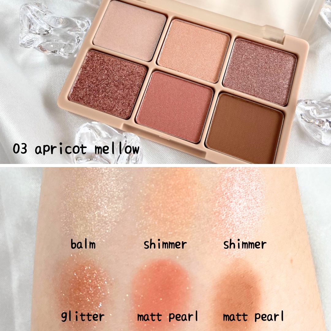 - シルキーななめらかさつづく#シルクシャドウ。 ハイライトやアイブロウ、チークにも使える質感MIX6色マルチパレット。ワンパレットで目元メイクが完成し、統一感のあるおしゃれ顔が簡単に。 どの色を重ねてもにごらず透け色がきらめき、微細なラメもぴたっと密着、失敗しらず。(5つの保湿美容成分配合*で目元しっとり。) *ヒアルロン酸Na、セラミドNP、カニナバラ果実油、シア油、ヤシ油